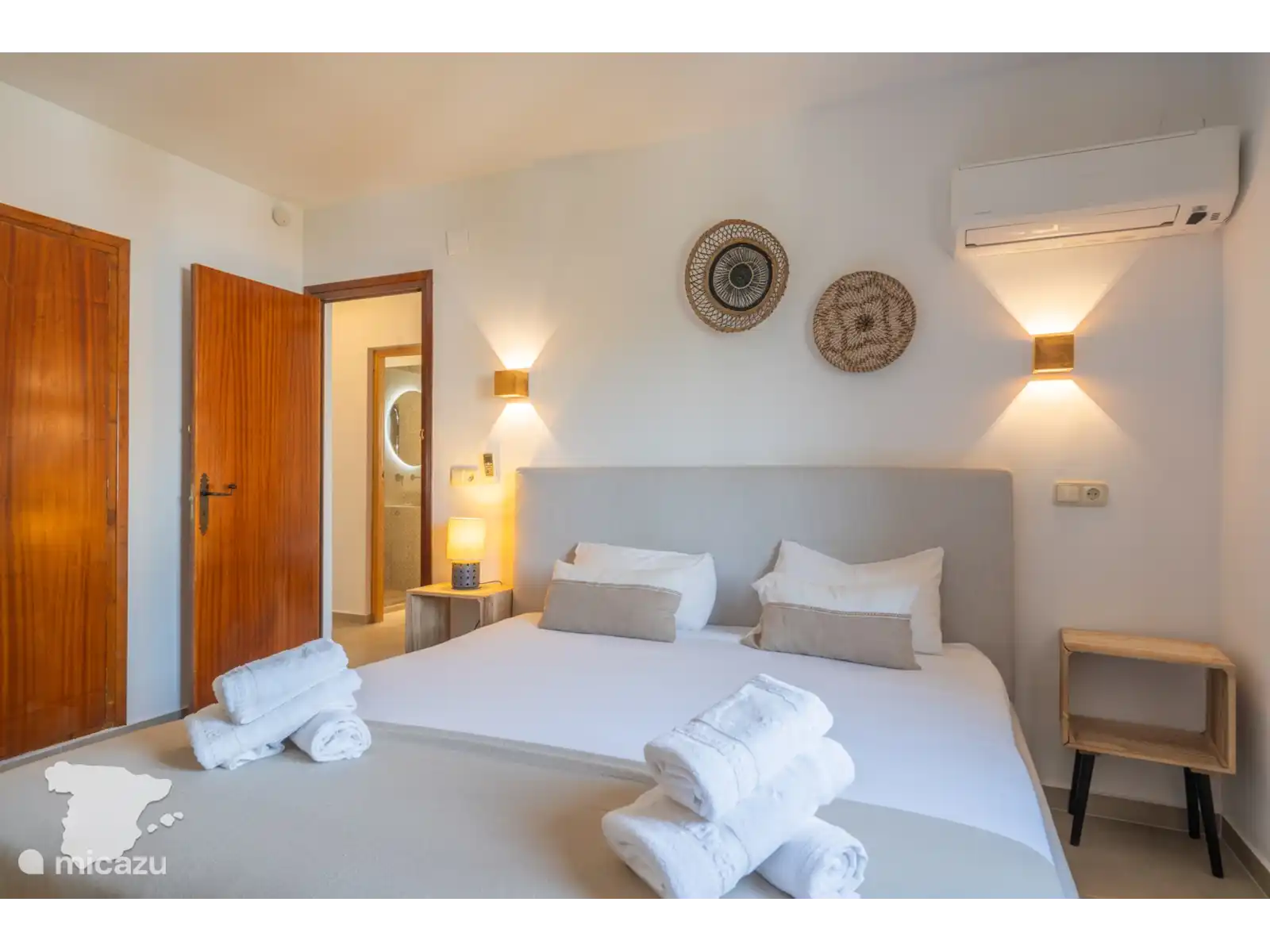 Les deux chambres sont confortablement meublées et une fois équipées de 1 lit double et dans l’autre chambre de 2 lits simples, de la climatisation pour le refroidissement et le chauffage et d’armoires encastrées. La salle de bains est située dans le couloir et est équipée d’une douche à effet pluie, de toilettes et d’un lavabo.