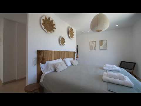 À l’intérieur, les espaces se fondent sans effort les uns dans les autres. Un escalier mène au sous-sol où se trouvent quatre chambres spacieuses, toutes avec leur propre salle de bain avec douche à effet pluie et toilettes. Chaque chambre a accès par des portes coulissantes en verre à une terrasse privée et au grand jardin et a une vue sur la mer. Une chambre est entièrement adaptée aux fauteuils roulants et est facilement accessible par un chemin par l’arrière. Au premier étage se trouvent trois autres chambres identiques avec les mêmes équipements et également des vues spectaculaires sur la mer. Chaque chambre est meublée avec style, dispose de bons systèmes d’air pour se rafraîchir en été et se réchauffer en hiver. Une chambre dispose d’un balcon. Toutes les chambres sont équipées de moustiquaires et toute la maison dispose d’un chauffage et d’un refroidissement par le sol. Fitness, bien-être et divertissementAu sous-sol, il y a une salle de fitness avec des équipements professionnels, un sauna infrarouge, un jeu de fléchettes, un baby-foot et une table de ping-pong, un bar confortable à côté d’un méga home cinéma avec une installation SONOS. Un endroit confortable lorsque le temps extérieur est un peu trop chaud ou pas si bon. Les enfants comme les adultes ne s’ennuieront pas facilement ici. Au sous-sol se trouve un espace pour machine à laver et sèche-linge.