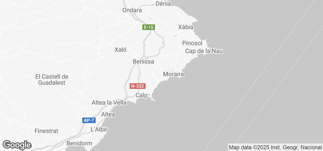Situé à côté du club de golf et à quelques minutes de l’une des plus belles baies 'Cala Baladrar' (avec le restaurant olala !) et exactement entre les autres belles baies populaires Playa de l’Ampolla, Cala Andrago, Advocat, Fustera et Bassetes (location de sports nautiques). À 5 minutes en voiture de Moraira (nombreux magasins et restaurants) et à 7 minutes de l’une des plus belles plages 'El Portet'. Les villes côtières voisines telles que Calpe, Altea, Javea et Denia, l’intérieur des terres telles que Jalon ou les grandes villes d’Alicante et de Valence sont facilement accessibles et valent le détour.