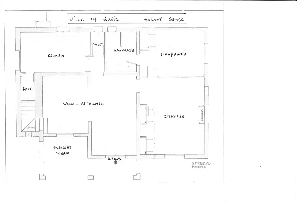 La maison compte deux étages, avec au rez-de-chaussée la cuisine, la salle à manger, le salon et une chambre avec salle de bain attenante avec double lavabo, toilettes, douche et baignoire. Cette chambre est adjacente à la piscine. Il y a aussi des toilettes séparées au rez-de-chaussée. Au rez-de-chaussée se trouvent deux autres chambres spacieuses, une pièce avec lits superposés et une salle de bain avec lavabo, douche et toilettes. Toutes les chambres sont équipées de la climatisation.