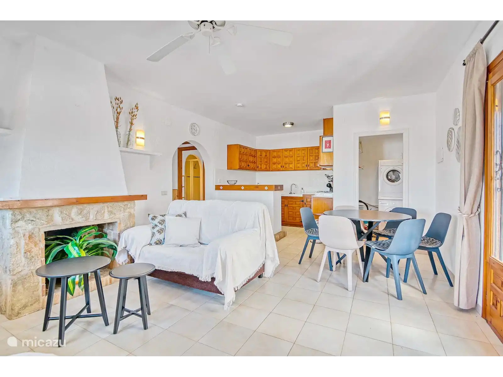 Parmi les équipements supplémentaires figurent le Wi-Fi haut débit (adapté aux appels vidéo), une télévision connectée (incluant une large gamme de chaînes sportives et de films) avec services de streaming, la climatisation dans la chambre principale et le salon, des ventilateurs, une machine à laver et un sèche-linge.