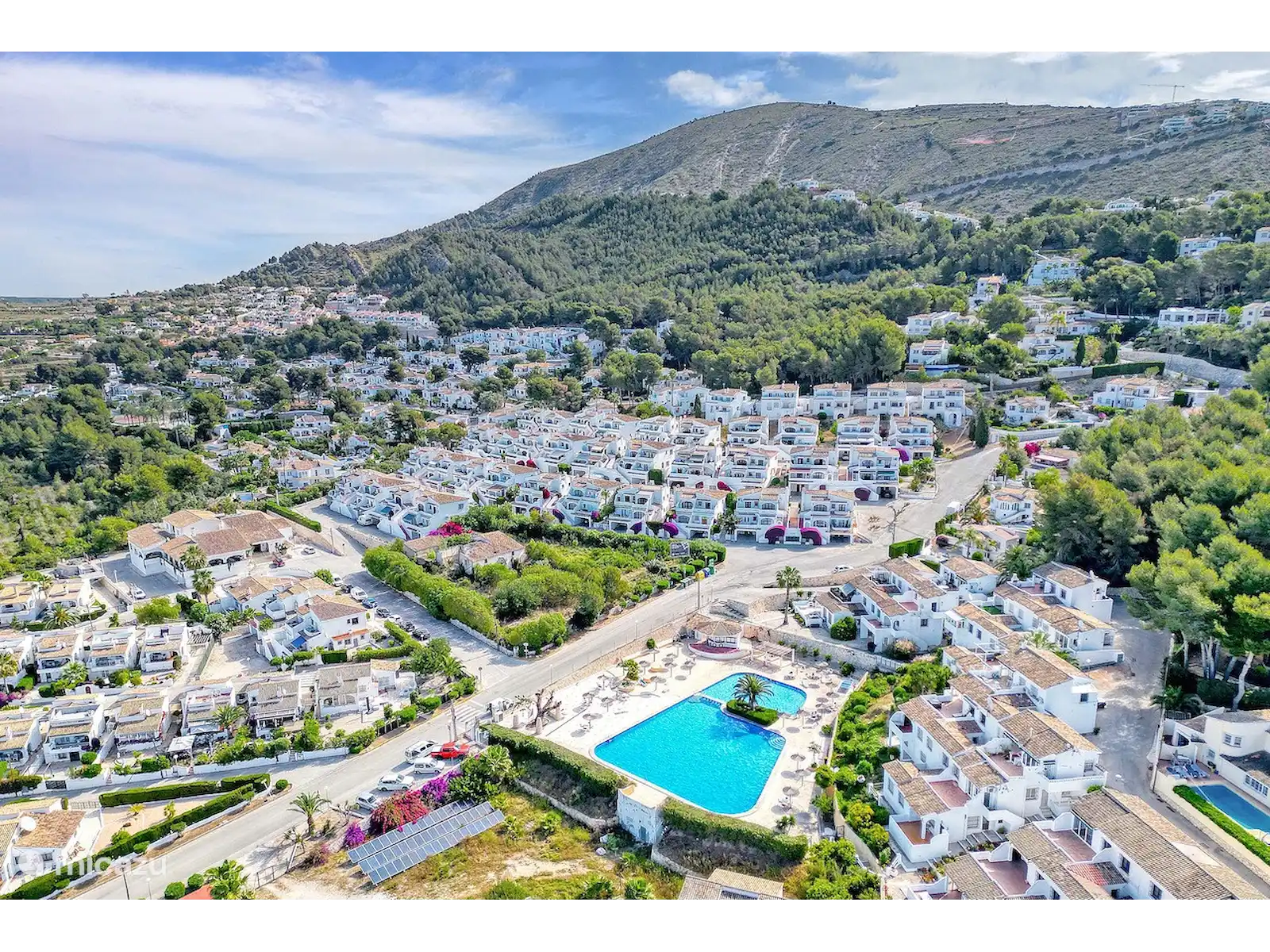 Maison de vacances 'Amor Supremo' à Villotel, près de Moraira, avec de magnifiques vues sur la montagne, deux terrasses privées, wifi et piscine commune.
