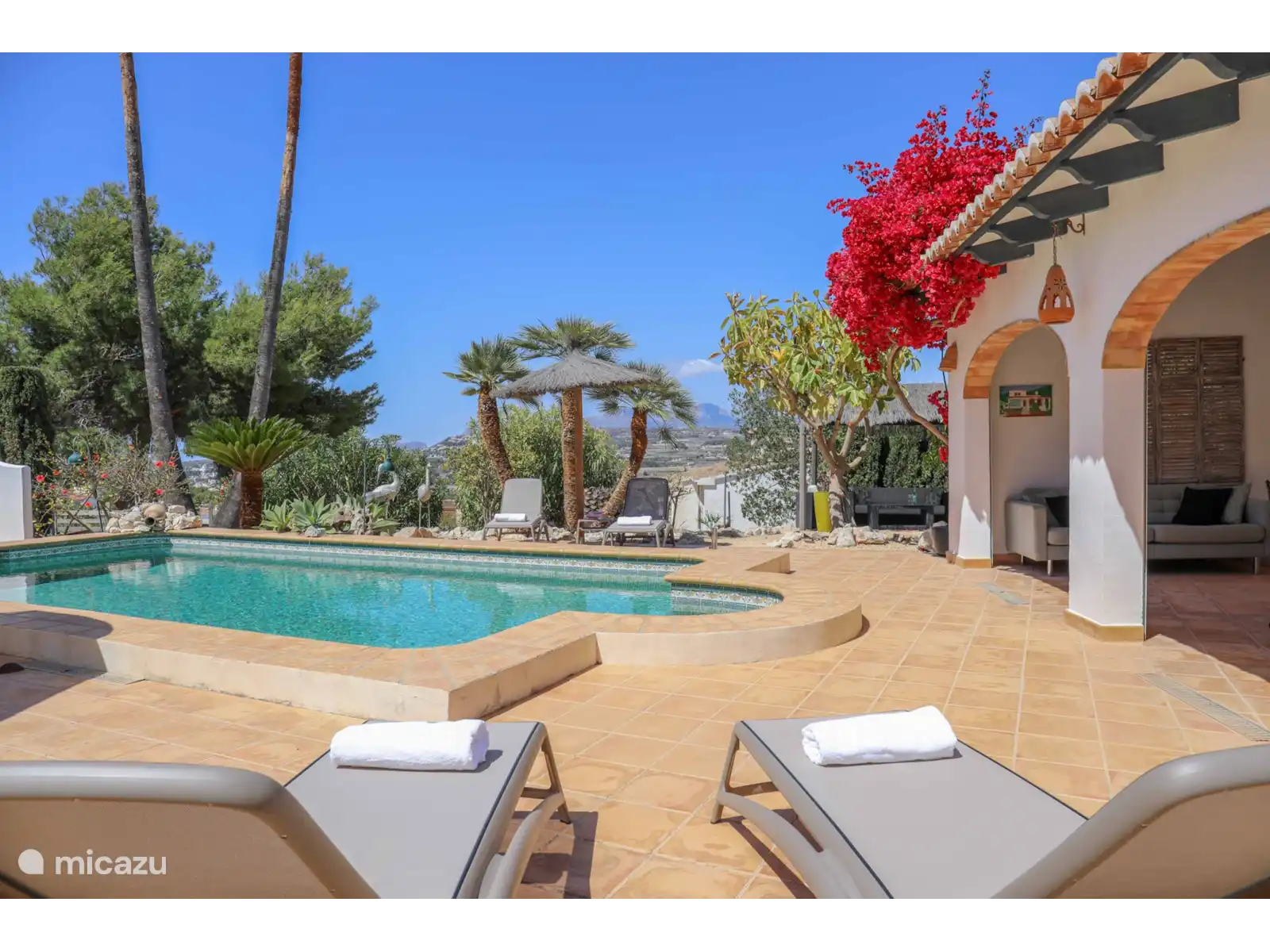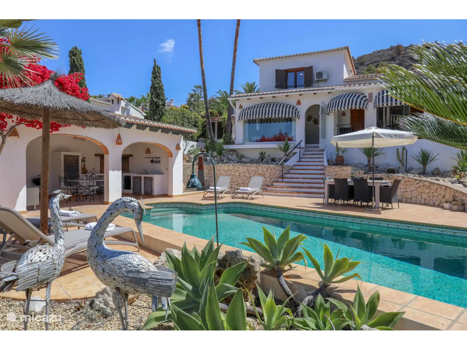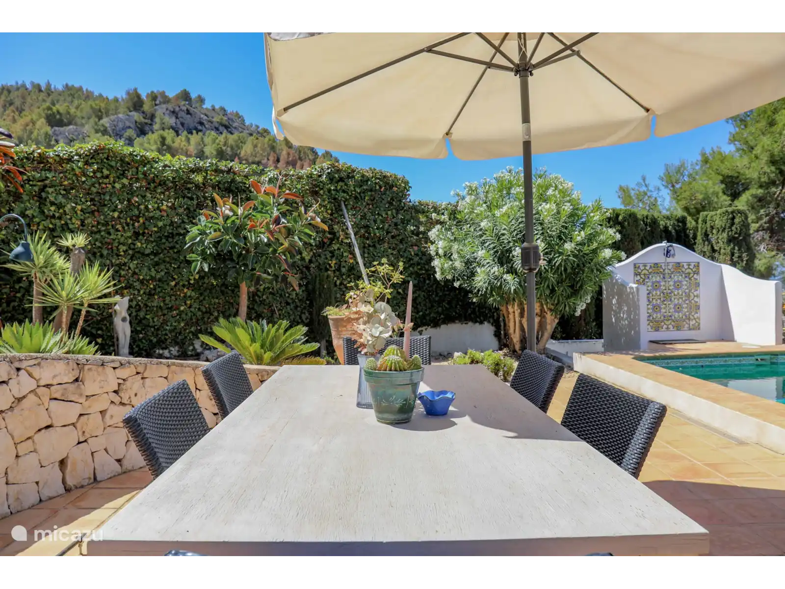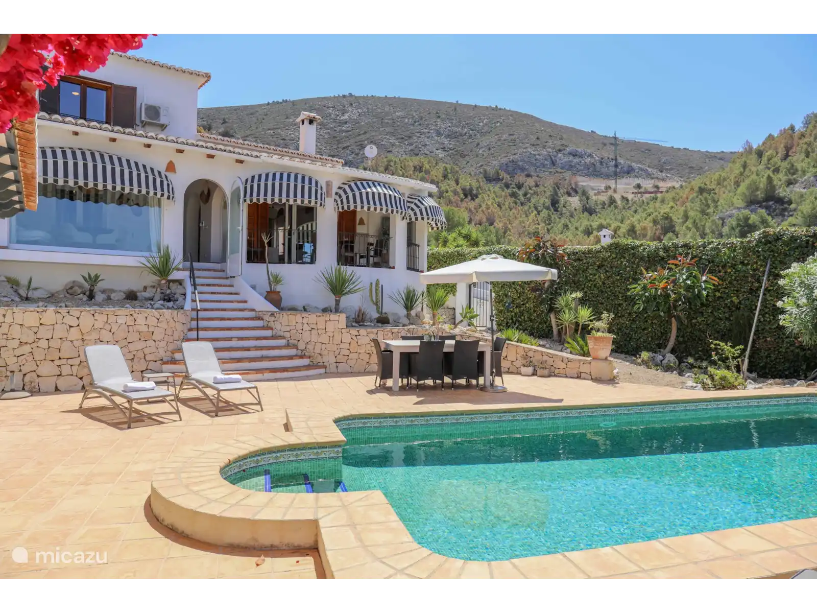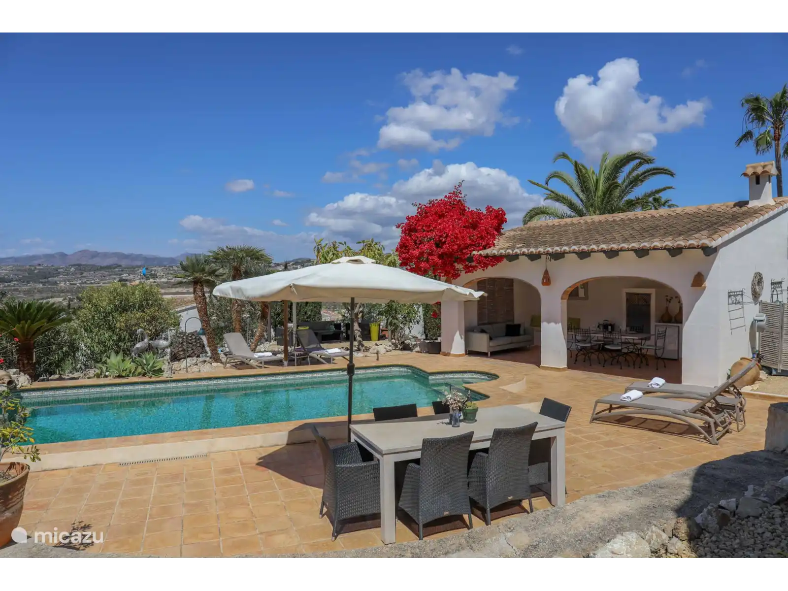 Cette belle maison de vacances sur la Costa Blanca se trouve dans un quartier résidentiel paisible de la petite ville espagnole authentique de Benitachell. La Villa Dadores est une villa spacieuse et confortable avec une piscine privée et une cuisine extérieure couverte . Les propriétaires néerlandais ont décoré la villa avec goût, une maison de vacances où vous vous sentirez immédiatement chez vous ! Depuis la maison et la terrasse, on a une belle vue sur la vallée verdoyante et, au loin, on peut voir un morceau de mer et le Peñon d’Ifach de Calpe.