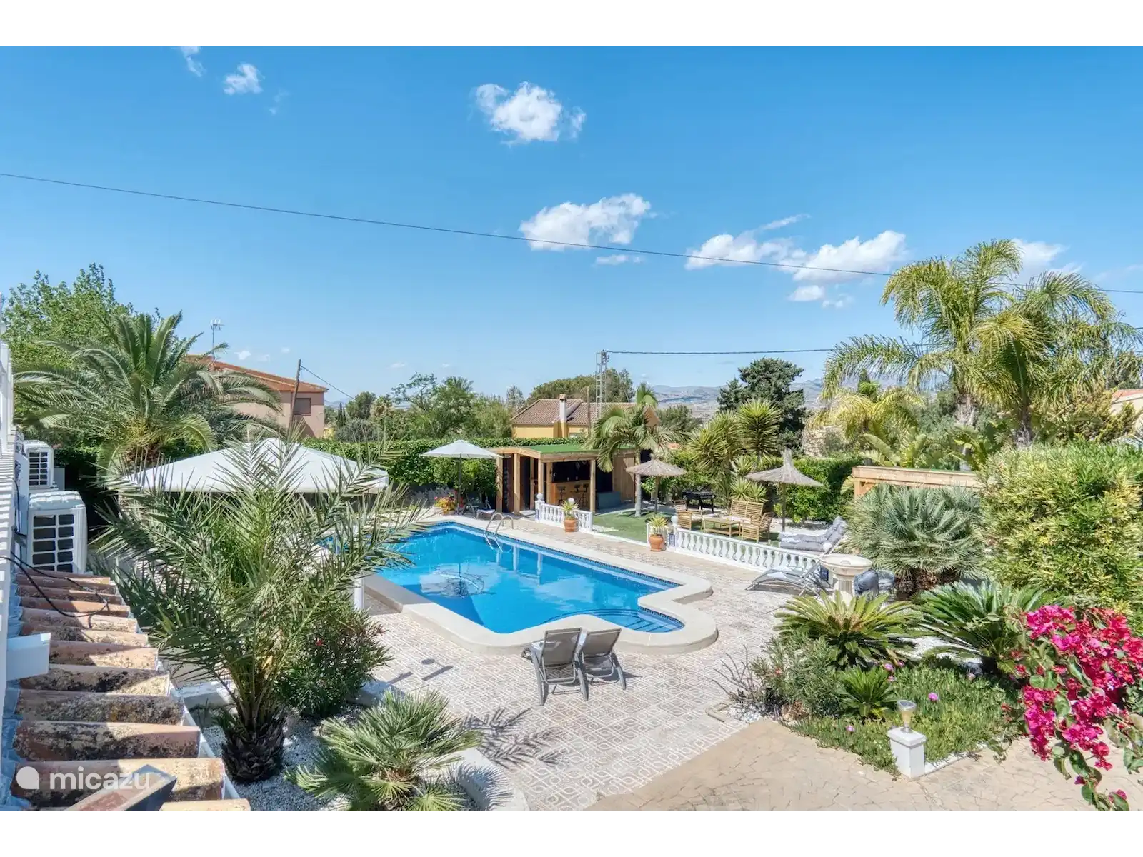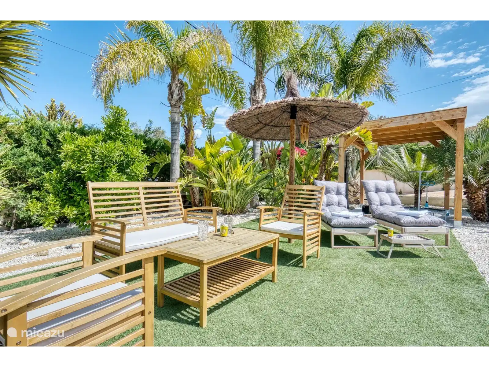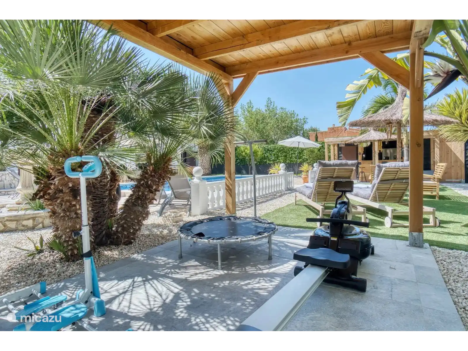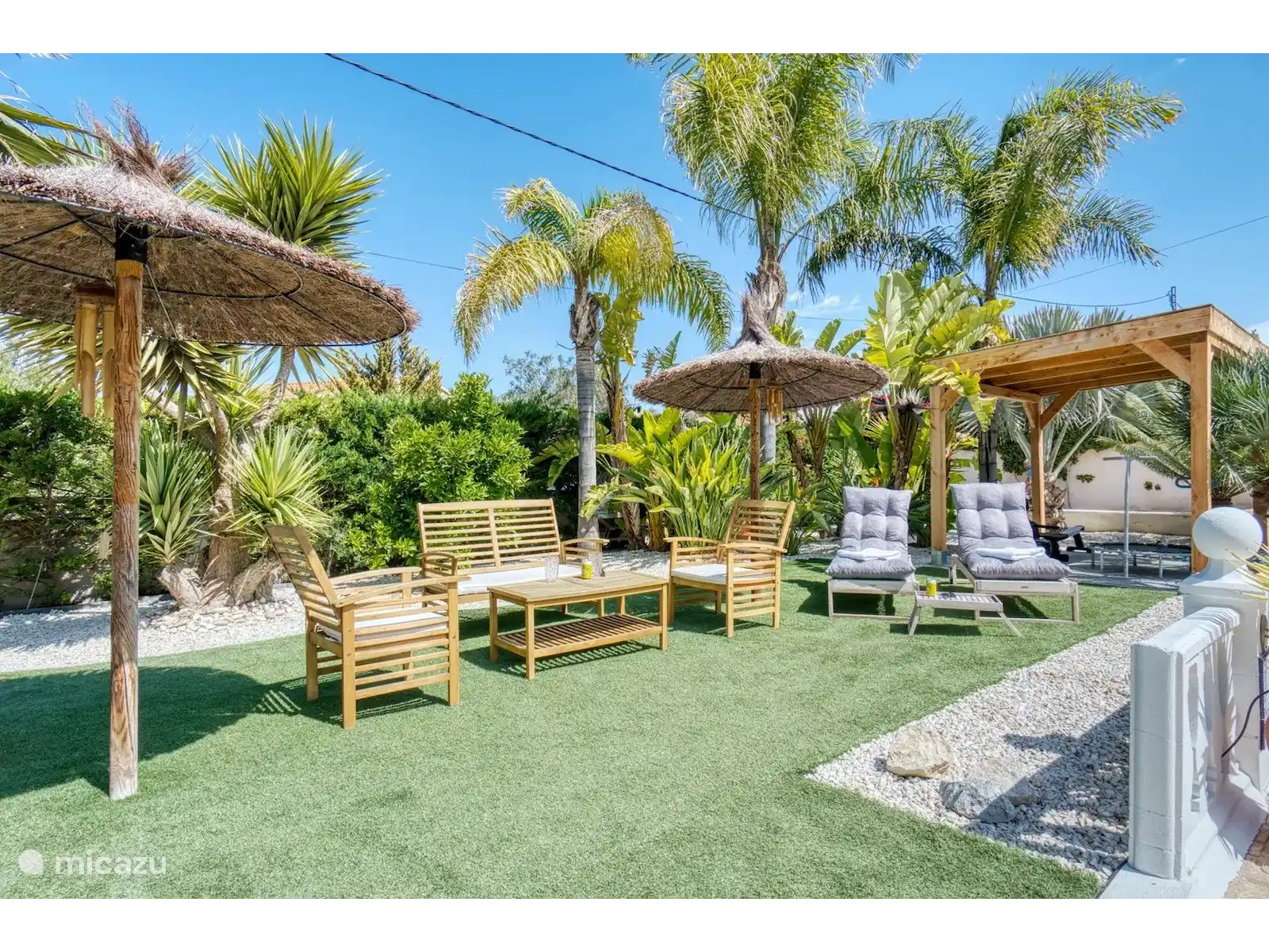 Le logement est équipé d’une connexion Wi-Fi haut débit (adaptée aux réunions en ligne), d’une télévision connectée grand écran avec services de streaming, de la climatisation et d’un ventilateur. Dans le jardin magnifiquement aménagé avec bar et appareils de fitness, les clients peuvent profiter d’un verre, du calme, de l’espace et du beau temps. En raison des différents coins salons, il y a toujours une place au soleil ou à l’ombre.