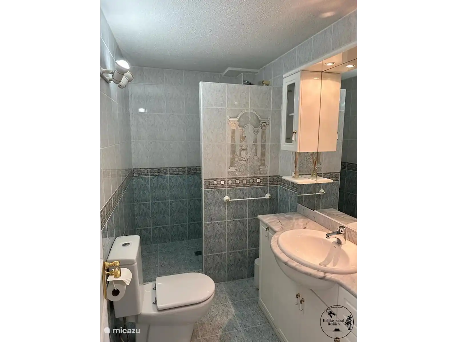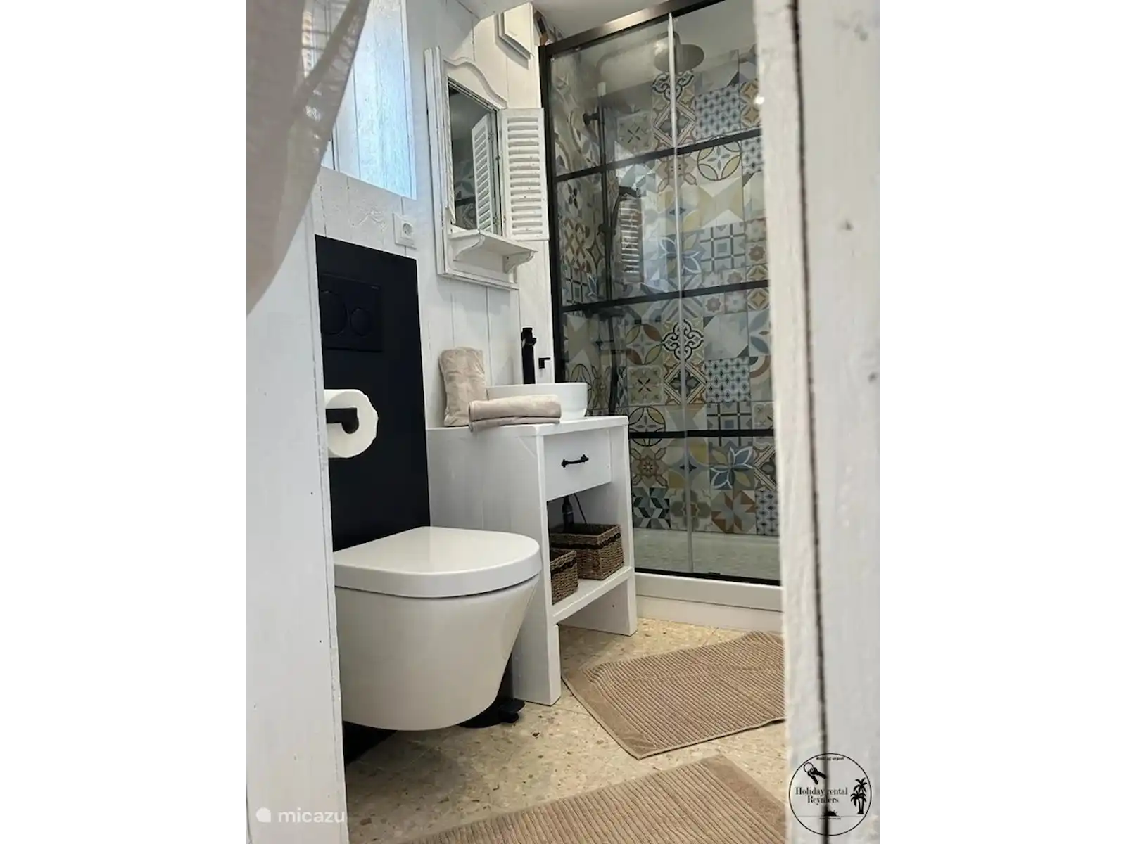 douche, lavabo et toilette. L'autre chambre avec 2 lits a une vue sur la mer,