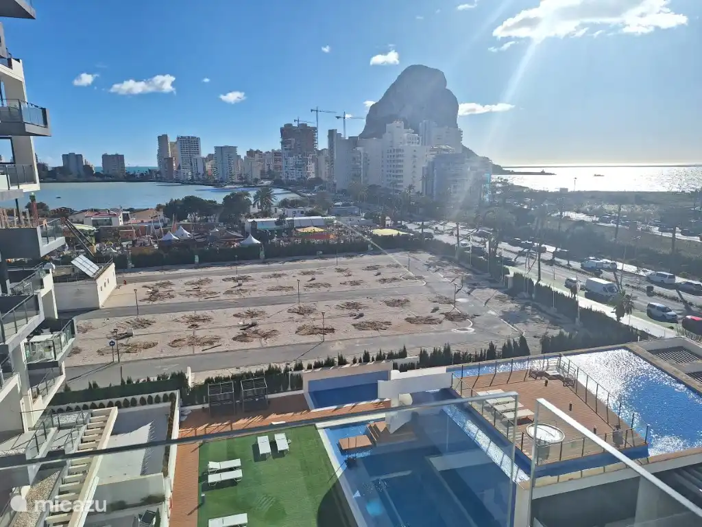 - Très grande terrasse meublée de 32 m² avec transats et salon offrant une panoramique à couper le souffle et une vue dominante sur la mer, vue sur le port et le rocher d’Ifach