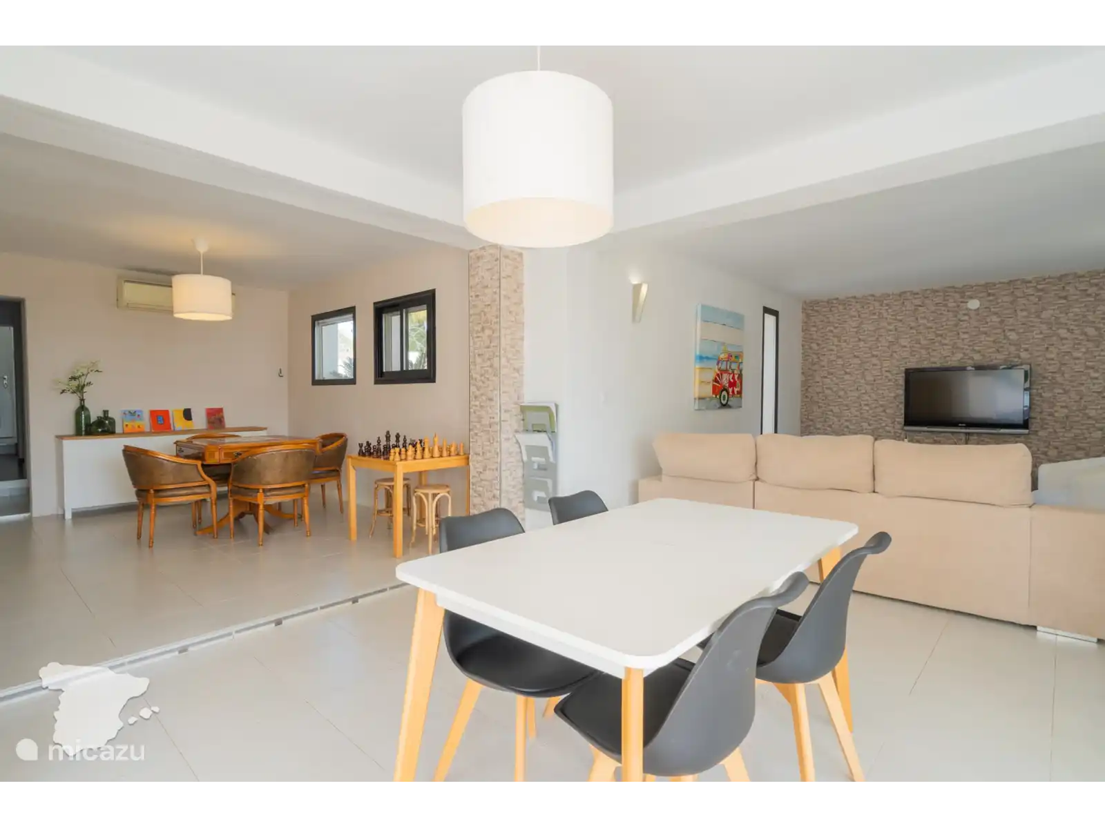 Les clients ont le choix entre 5 chambres à la fin de leurs vacances magiques. La première chambre se trouve au rez-de-chaussée. Cette chambre dispose de deux lits simples et d’une armoire et de la climatisation. Dans le couloir, vous trouverez immédiatement la première salle de bain. Ici, vous pouvez prendre une douche rafraîchissante dans la douche à l’italienne. L’escalier vous emmène à l’étage où vous entrez immédiatement dans une chambre équipée d’un canapé-lit confortable. Les trois autres chambres sont adjacentes à celle-ci. Deux chambres disposent d’un lit double, d’une armoire et de la climatisation, ces chambres ont également accès au balcon. L’autre chambre est une chambre d’enfant. Il y a deux lits simples plus petits ici. La salle de bain de cet étage dispose d’une douche à l’italienne, de toilettes et d’un lavabo.