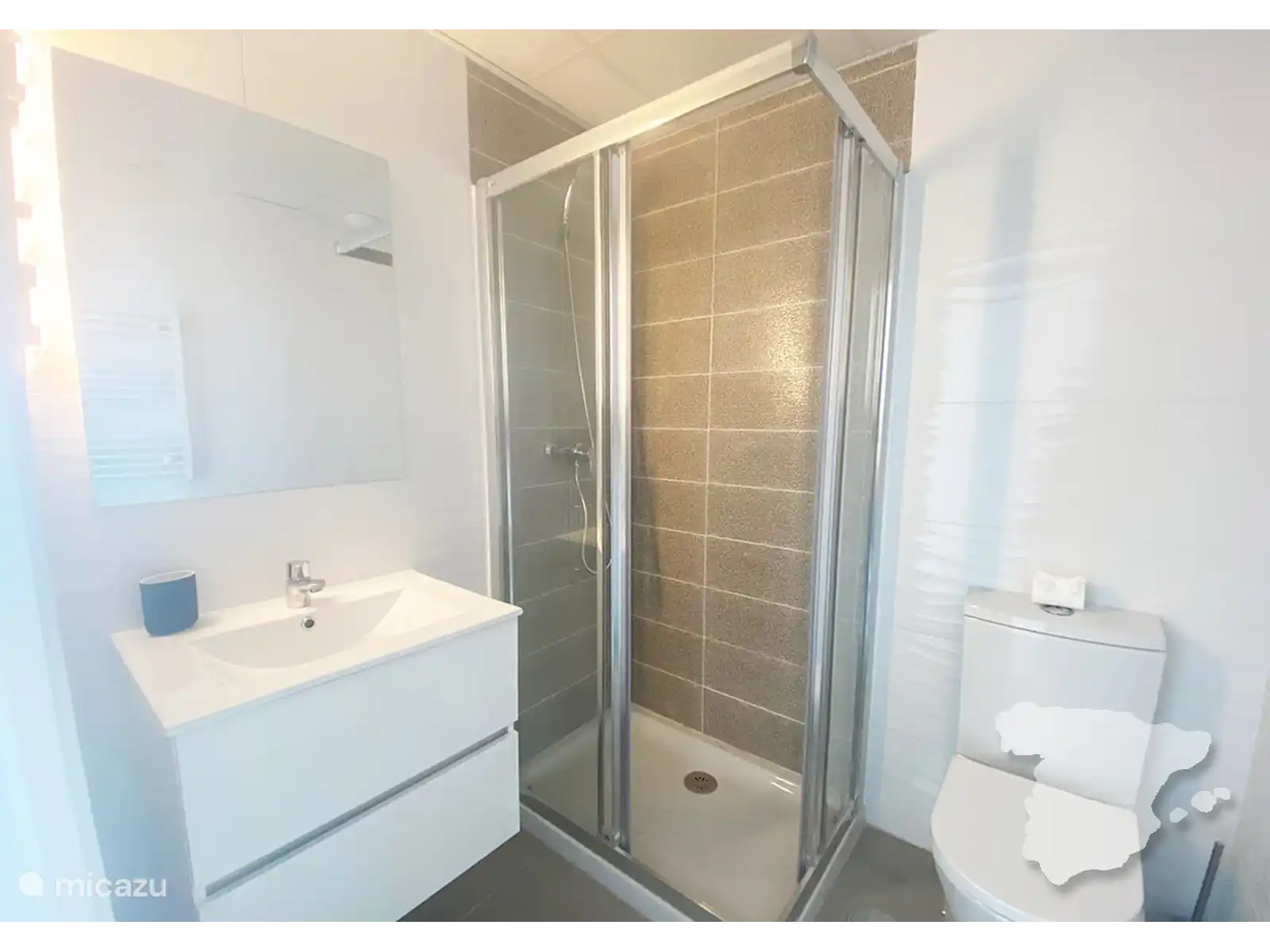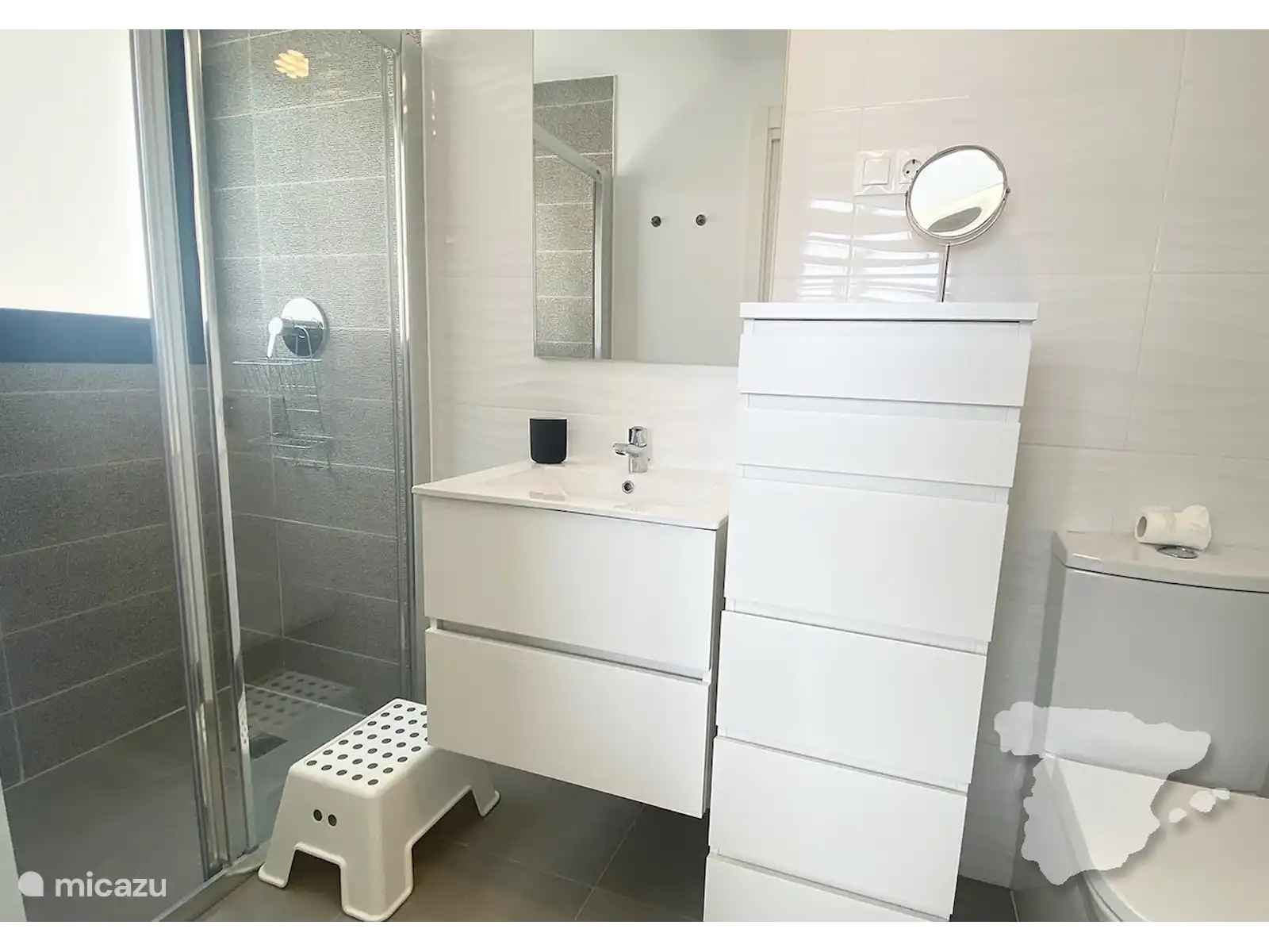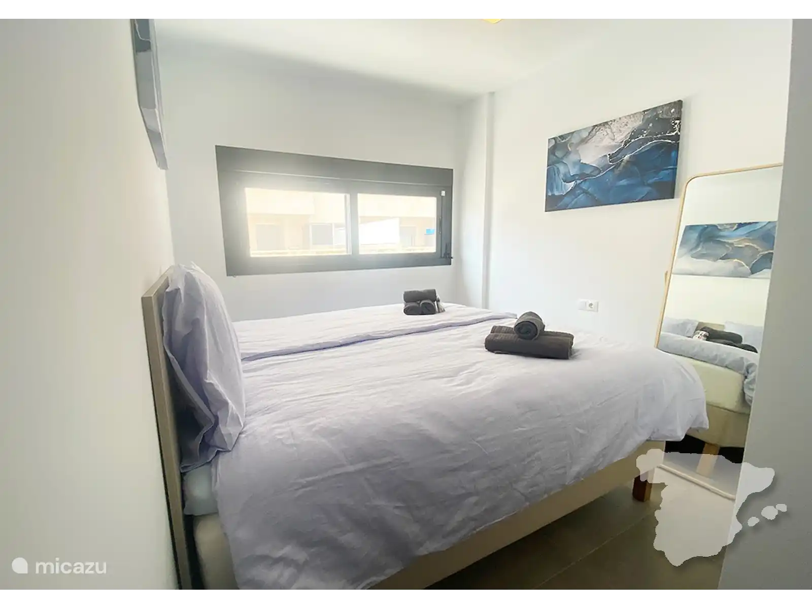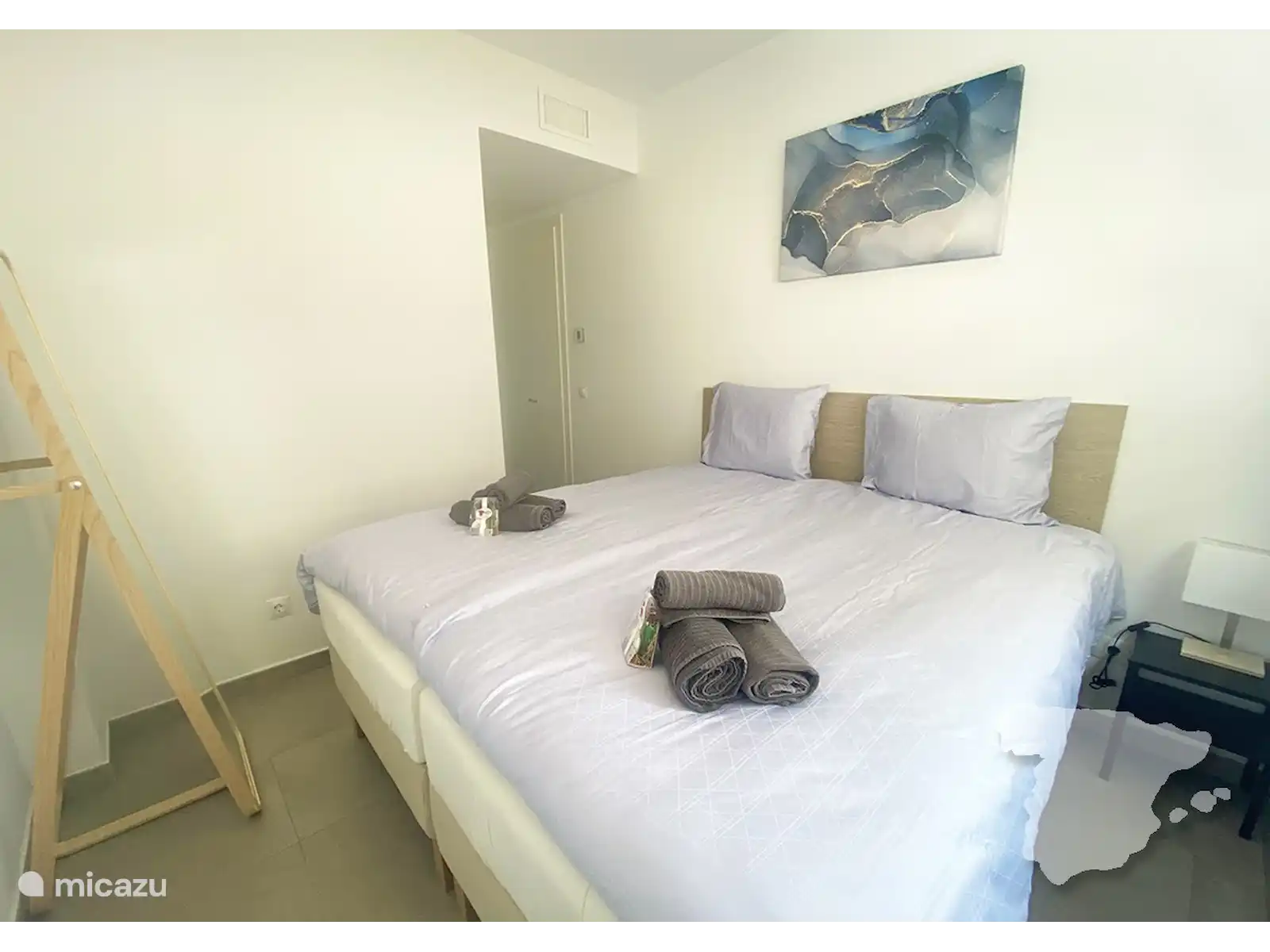 La chambre principale dispose d’un lit merveilleusement confortable, d’une armoire, de la climatisation et d’une salle de bains privative avec douche à l’italienne. La deuxième chambre est également équipée d’un lit confortable, d’une armoire et de la climatisation. La troisième chambre dispose d’un canapé-lit et d’une petite armoire. La salle de bain de ces deux chambres se trouve dans le couloir. Il est également équipé d’une douche.