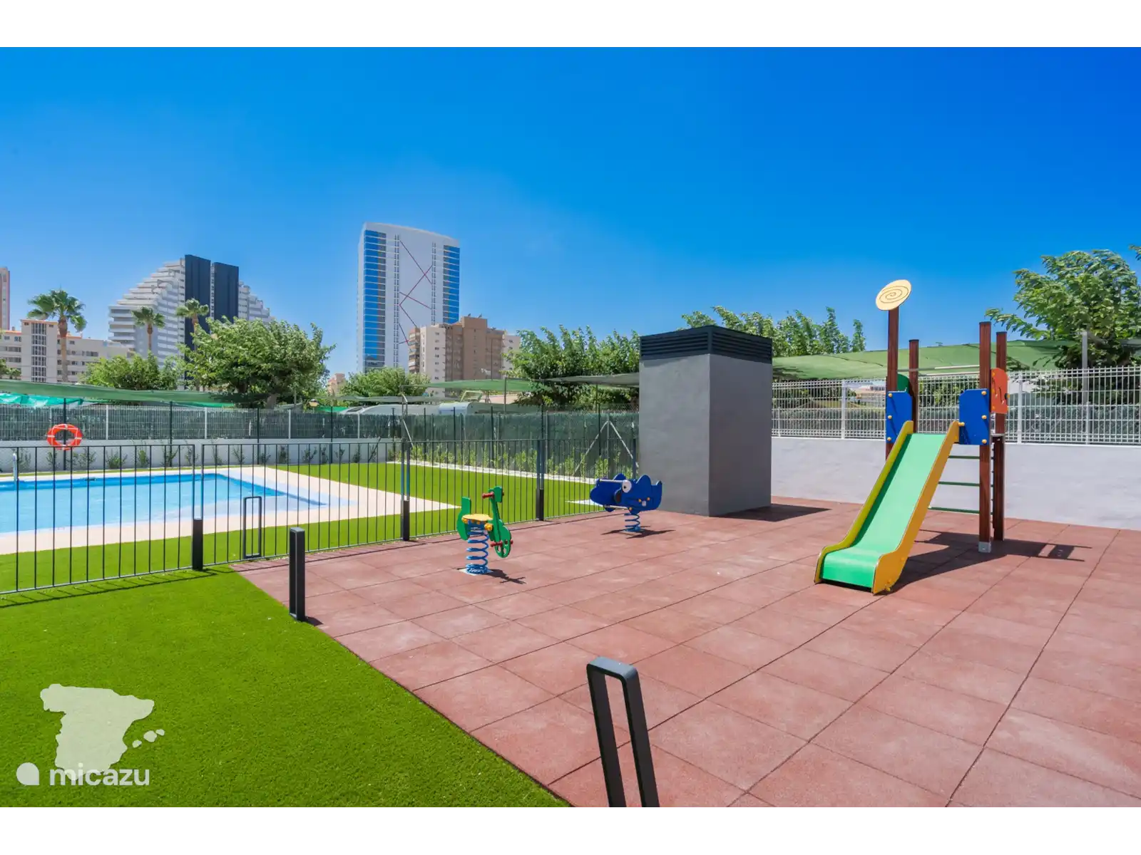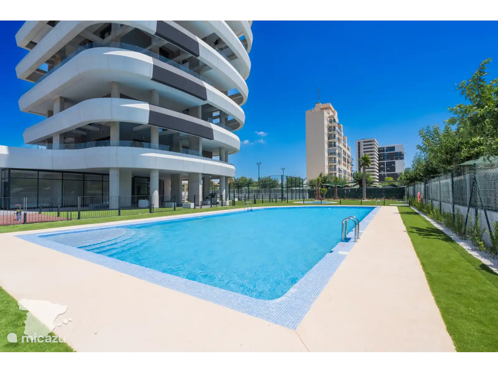 Et vous pouvez profiter de la grande piscine commune, y compris la piscine pour enfants, et il y a une aire de jeux extérieure pour les enfants. Pour les amateurs de fitness, il y a une salle de sport intérieure disponible (pas encore ouverte) et un terrain de padel.
