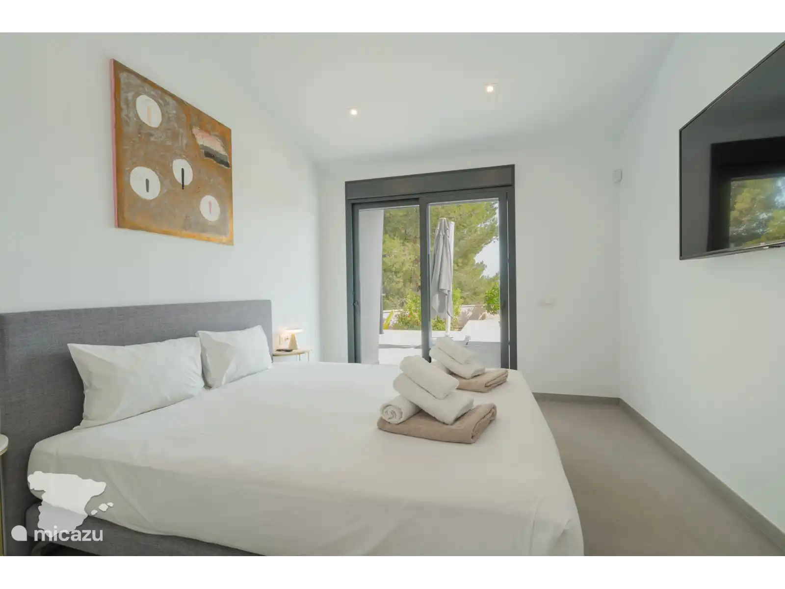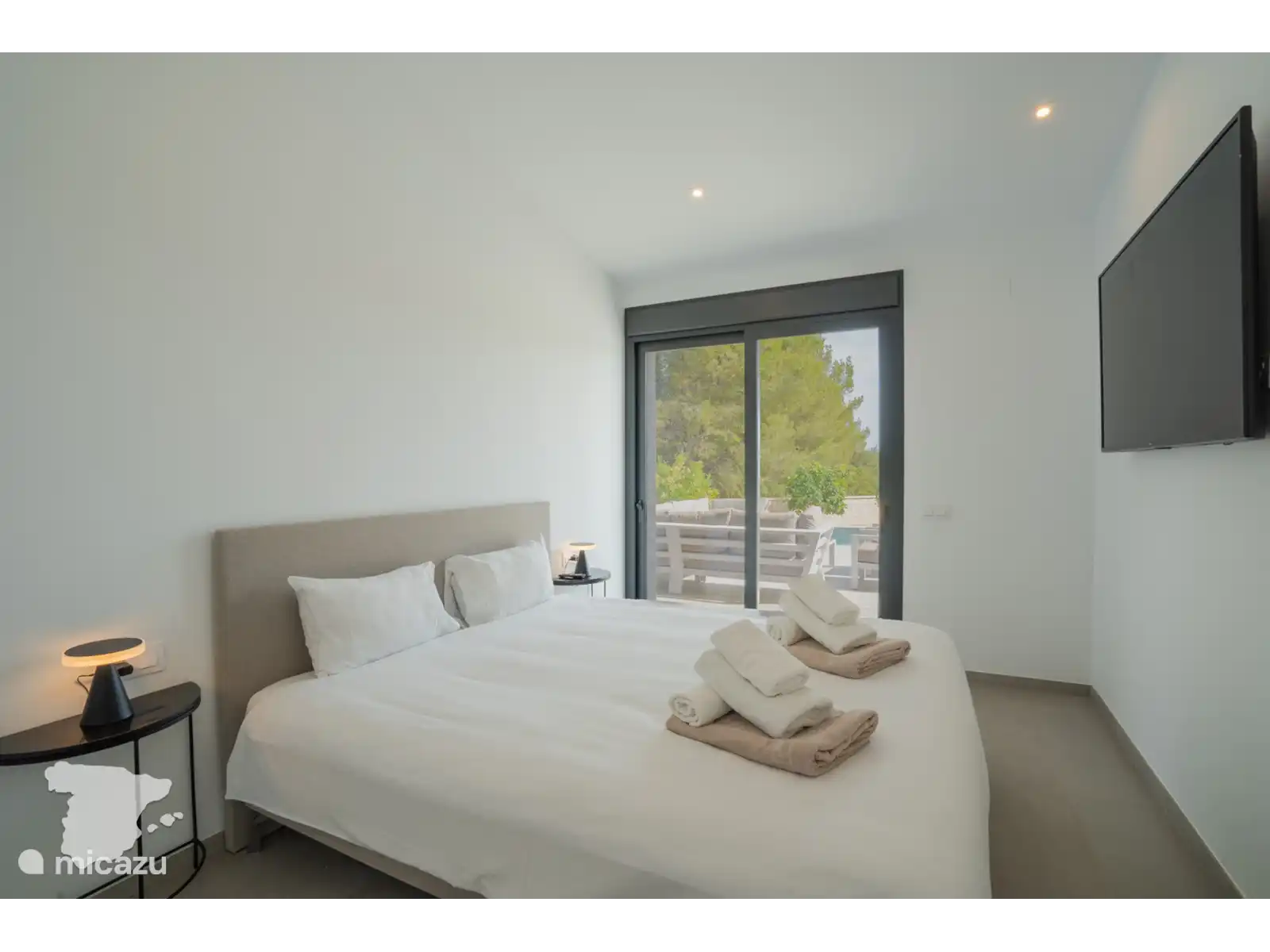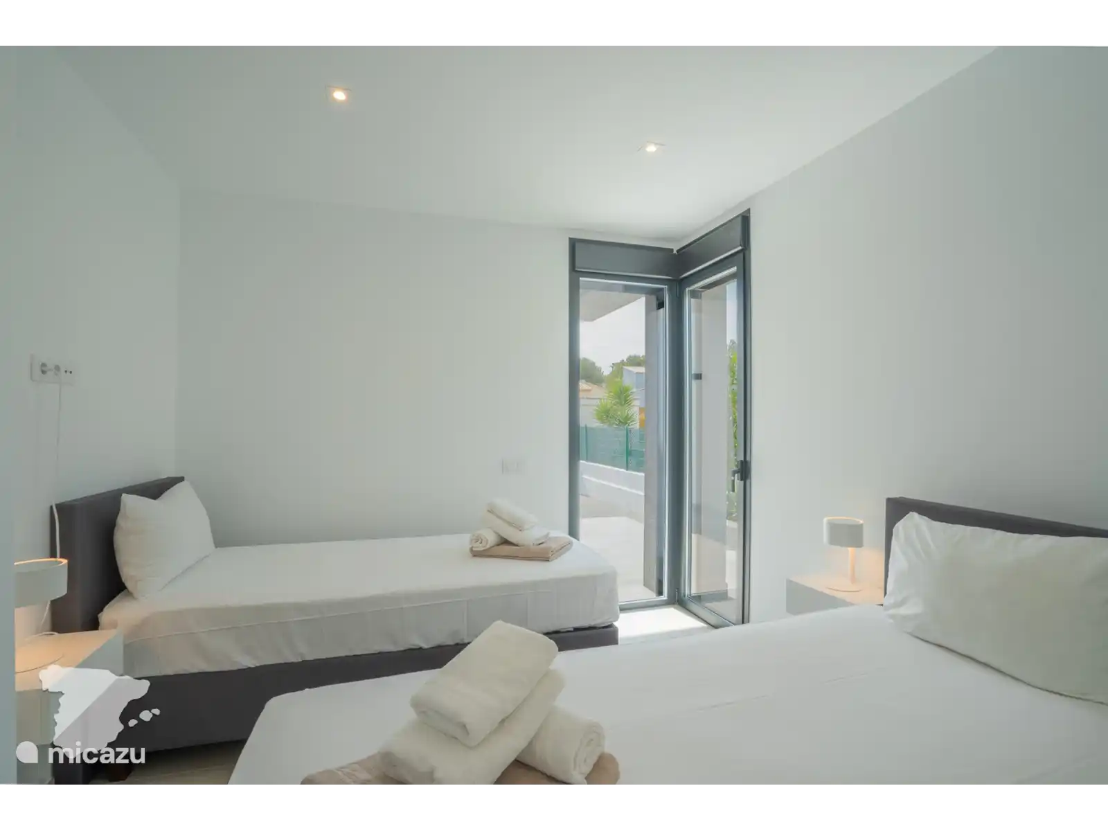 La villa peut accueillir jusqu’à 8 personnes. Il y a 3 lits king size, chacun avec de grandes fenêtres lumineuses donnant sur le jardin, des tables de chevet et des lampes de lecture et un grand espace de rangement pour tous les vêtements et sacs de voyage. Et puis vous avez la quatrième chambre qui est équipée de deux lits simples, d’une lampe de chevet et d’une armoire intégrée.