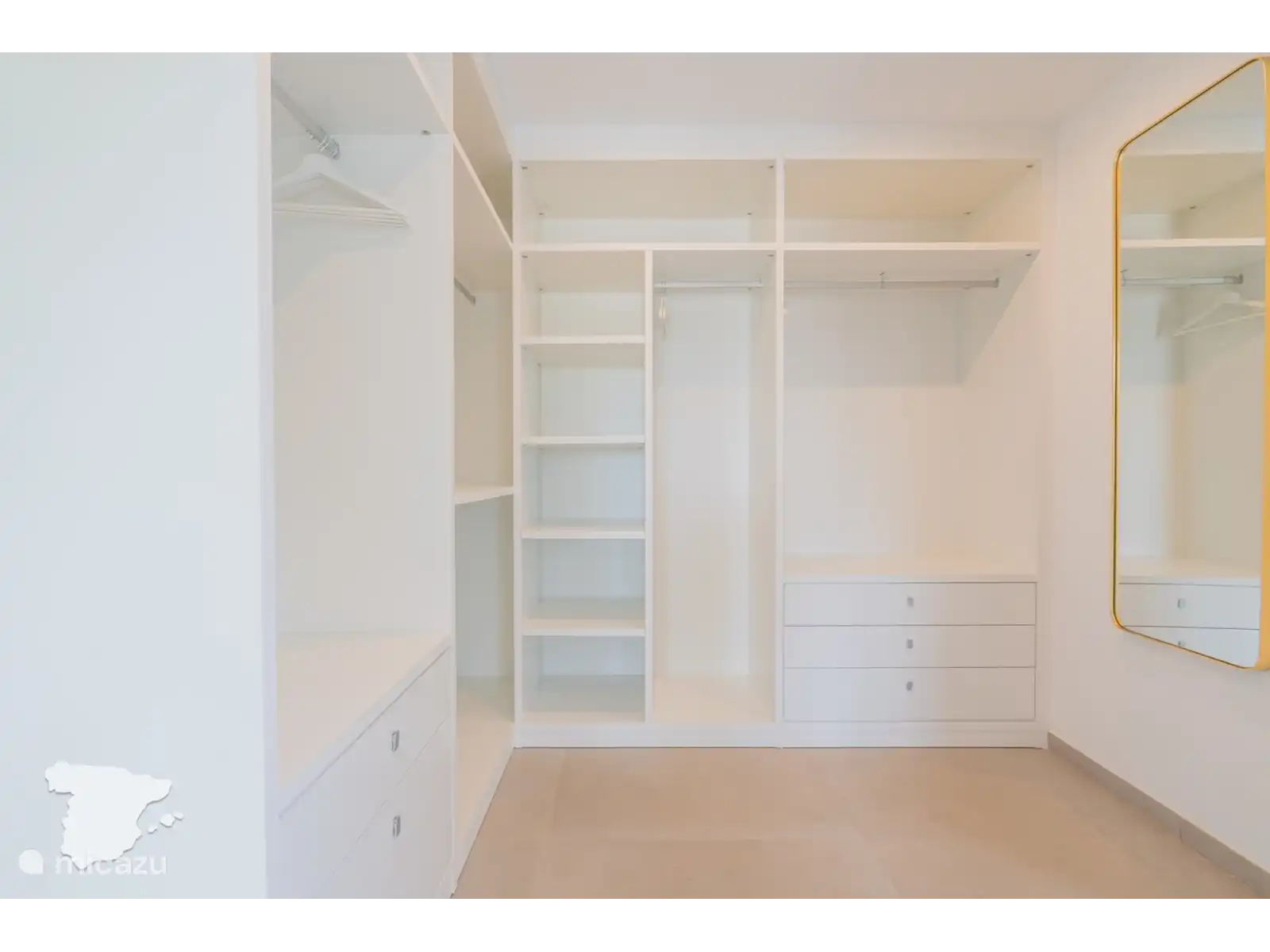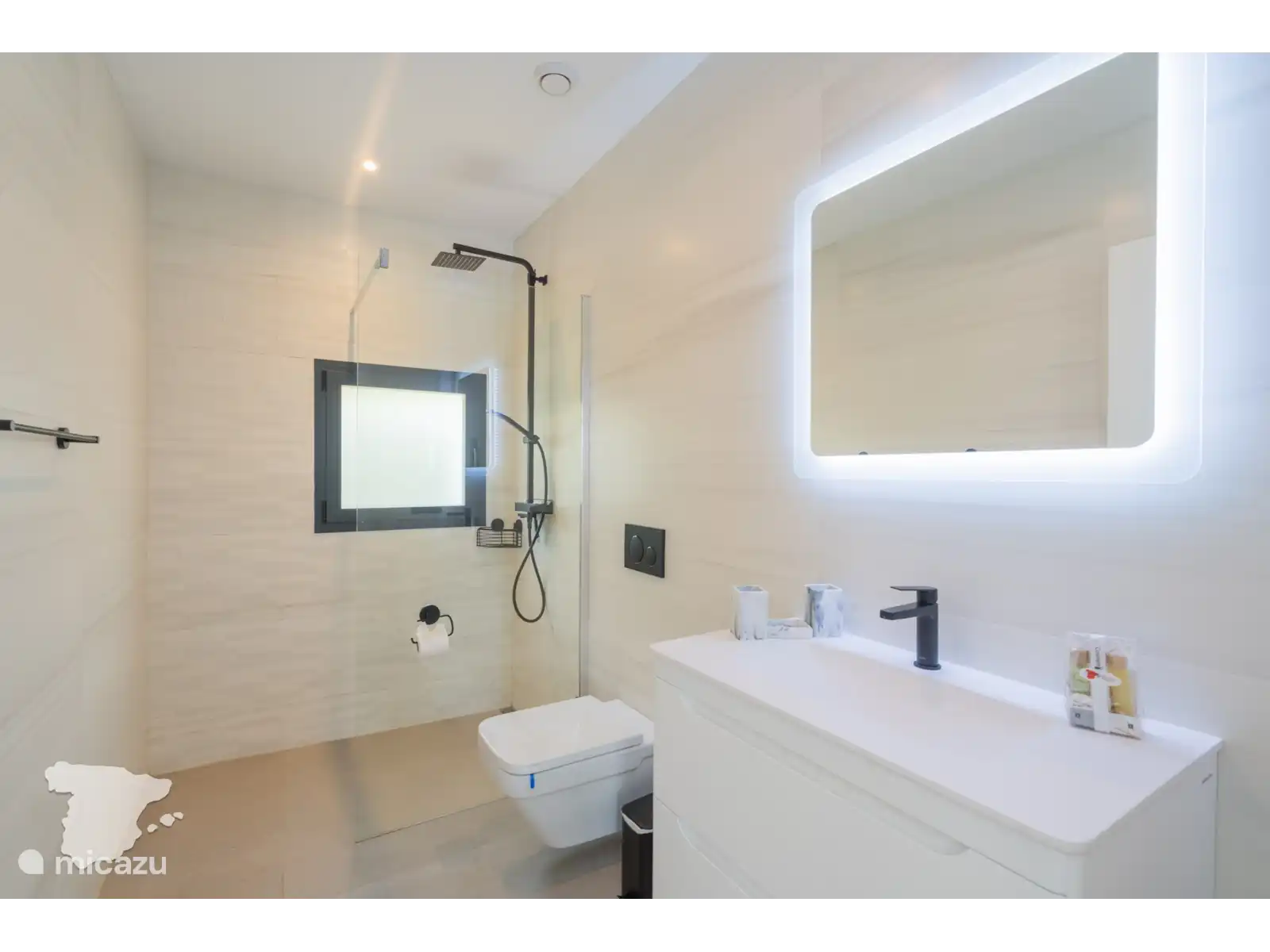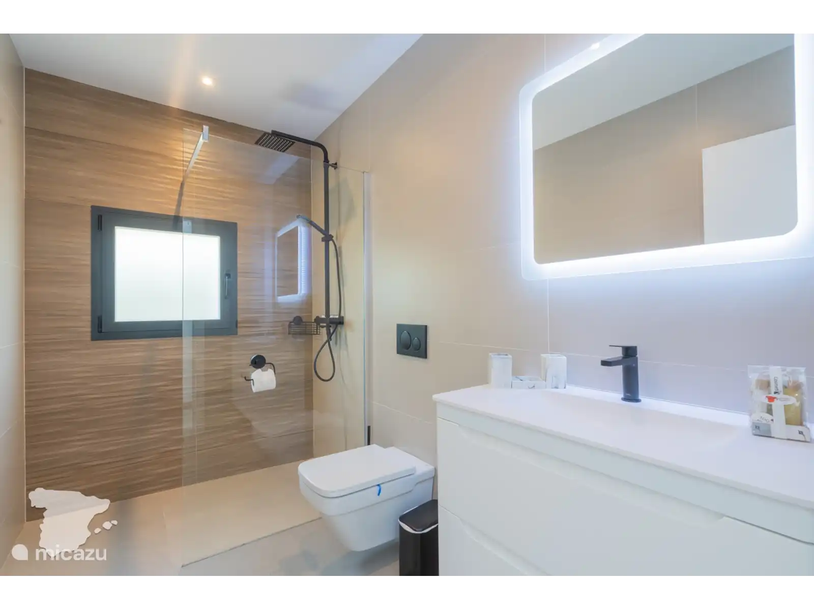 La chambre principale dispose d’un dressing spacieux et d’une salle de bains attenante avec douche à effet pluie, toilettes et lavabo. Dans le couloir, il y a deux autres salles de bains, toutes deux équipées d’une douche à effet pluie spacieuse, de toilettes et d’un lavabo.