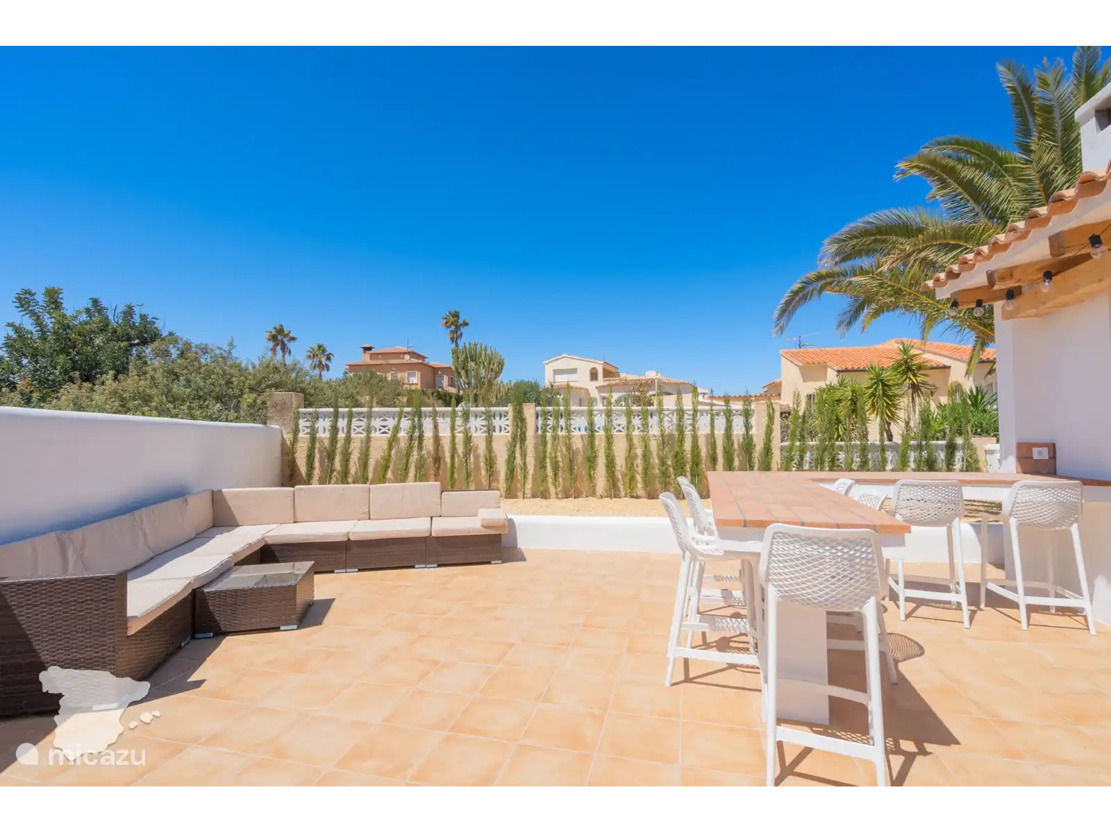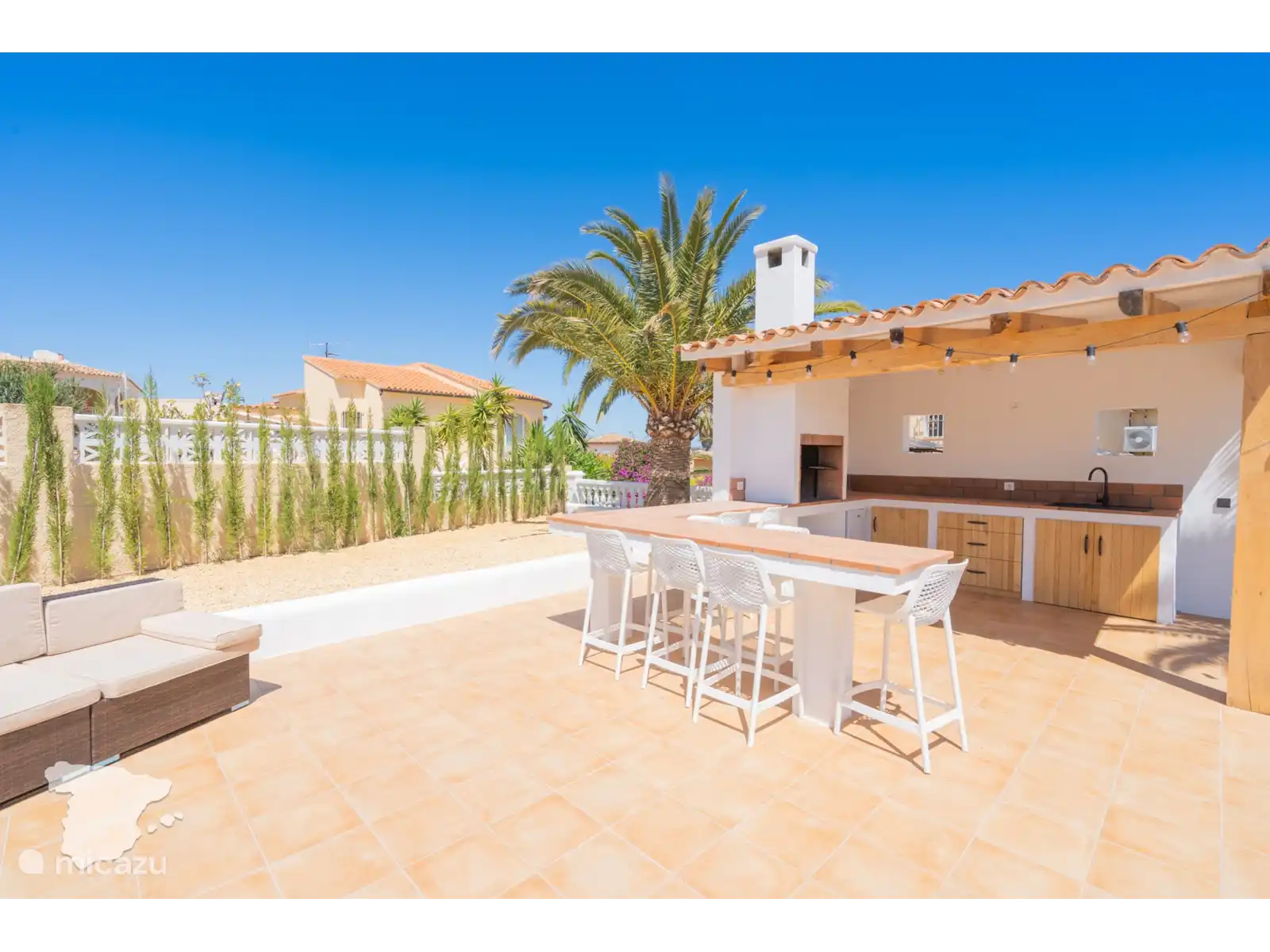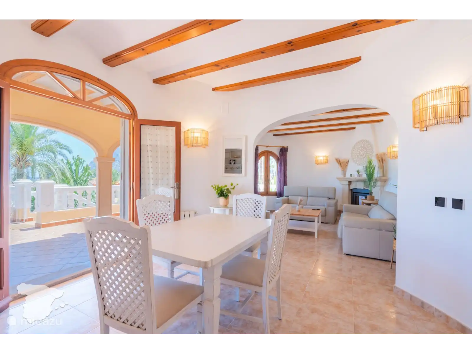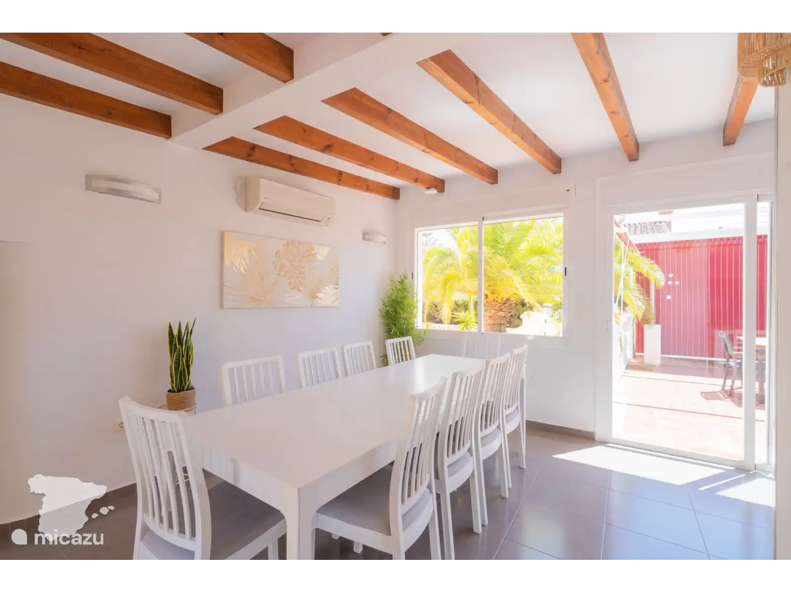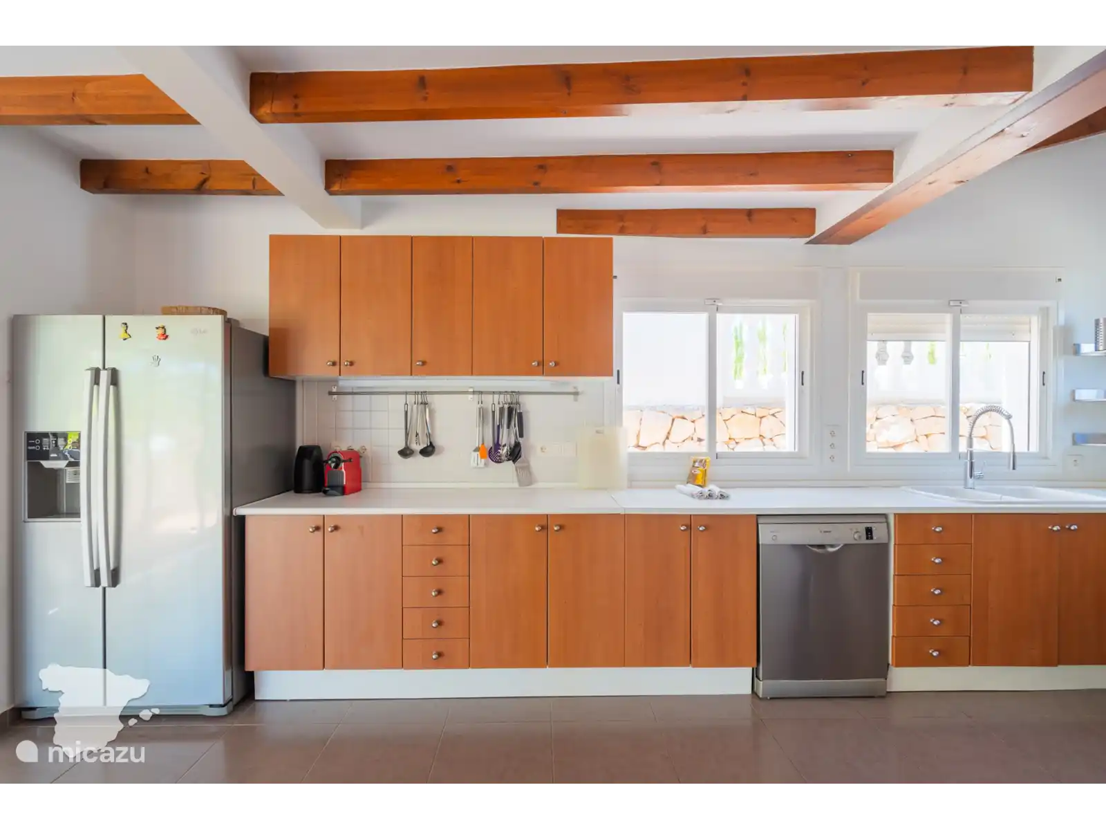 Lorsque vous entrez dans la Villa Margarita, vous verrez le salon avec la télévision sur le mur et les sièges autour, il y a donc beaucoup d’espace pour se détendre et regarder vos émissions préférées après une journée à la plage. Tenez facilement le front intérieur informé via le WIFI gratuit (fibre optique). De là, jetez un coup d’œil à la table à manger. Des dîners de famille tous les jours ! De plus, la grande cuisine avec tous les appareils importants et de nombreux placards. Il est prêt pour que vous puissiez préparer les repas de famille quand vous le souhaitez.