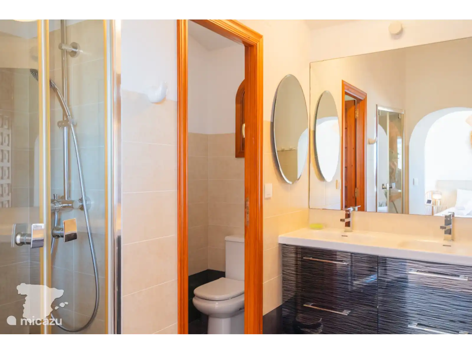 Montez les escaliers et découvrez les 3 autres chambres ! Également à cet étage, vous avez le luxe que les 3 chambres ont leur propre salle de bain. Une chambre dispose d’un lit double et l’autre de lits jumeaux. Les deux disposent d’une salle de bains privative avec douche, lavabo et toilettes. La dernière chambre dispose également d’un lit double + un lit gigogne supplémentaire et de la climatisation. La salle de bain est située dans le couloir avec douche, lavabo et toilettes.