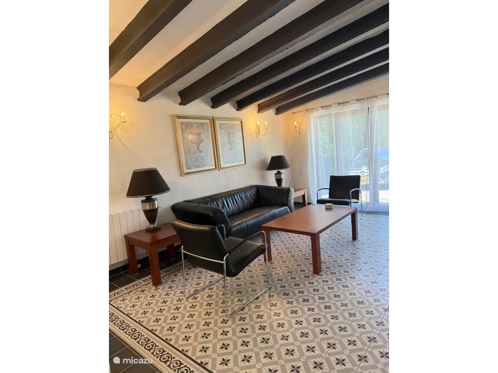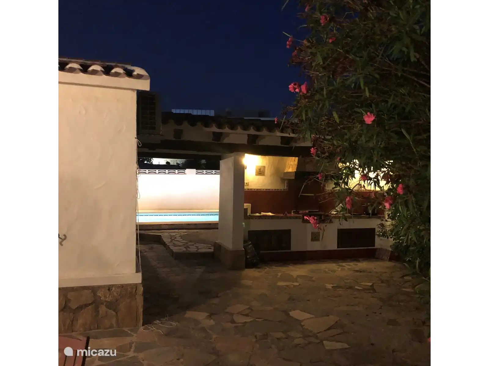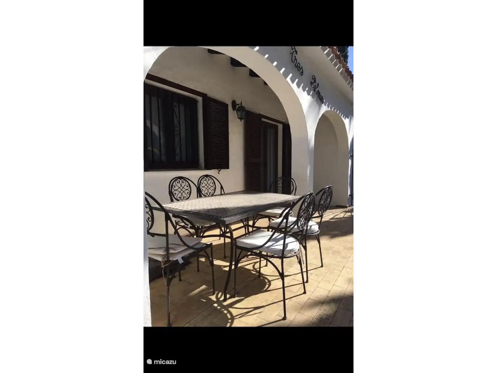 - 'naya' (terrasse) couverte donnant sur le jardin avant avec Tres Palmas et table à manger et chaises