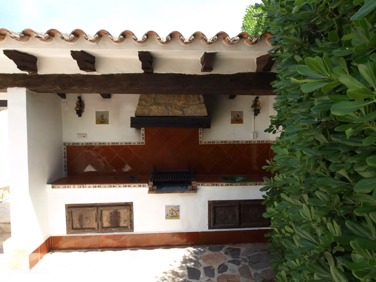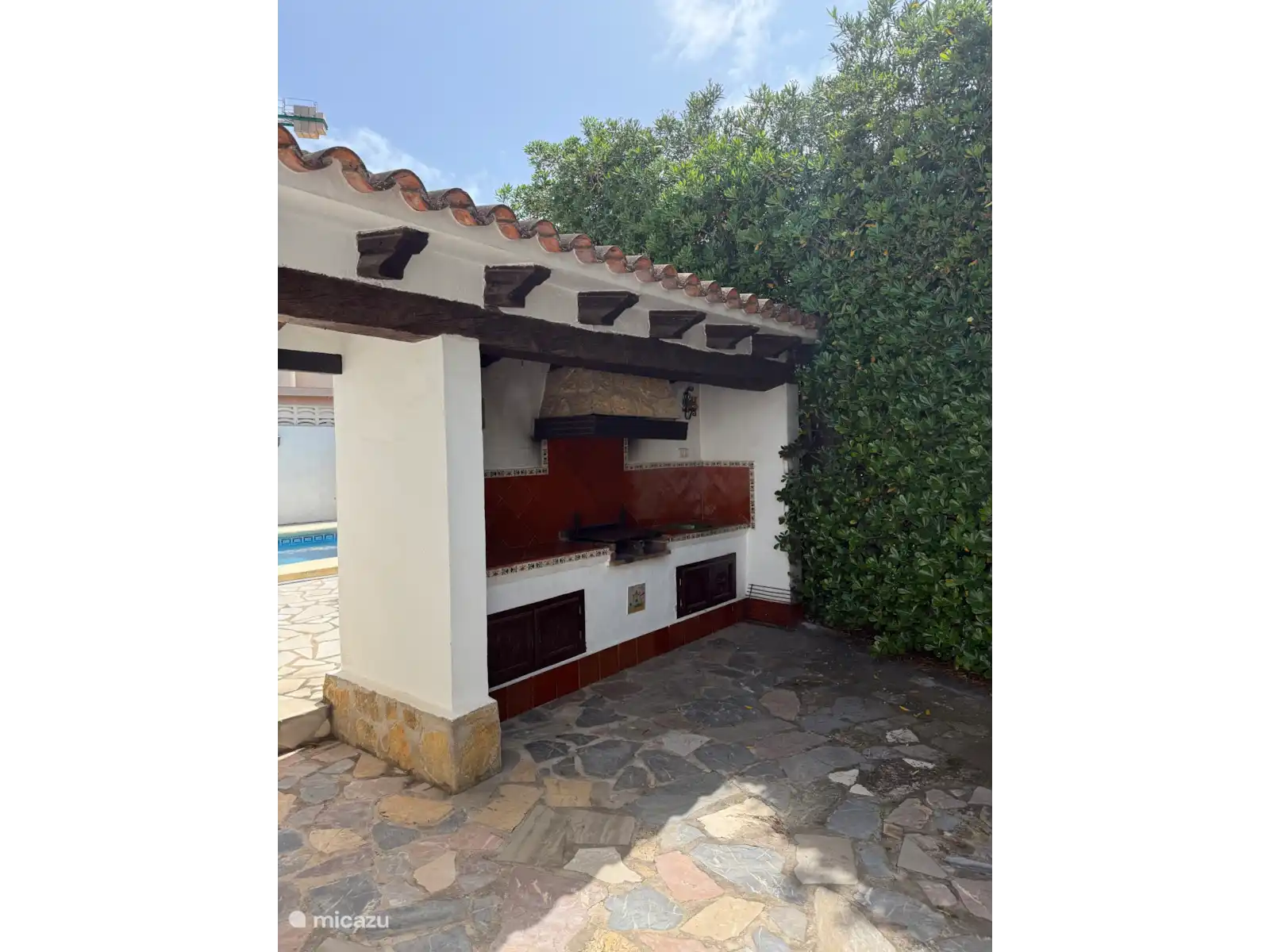 - Terrasse spacieuse avec barbecue extérieur, table à manger et 6 chaises à l’arrière de la villa
