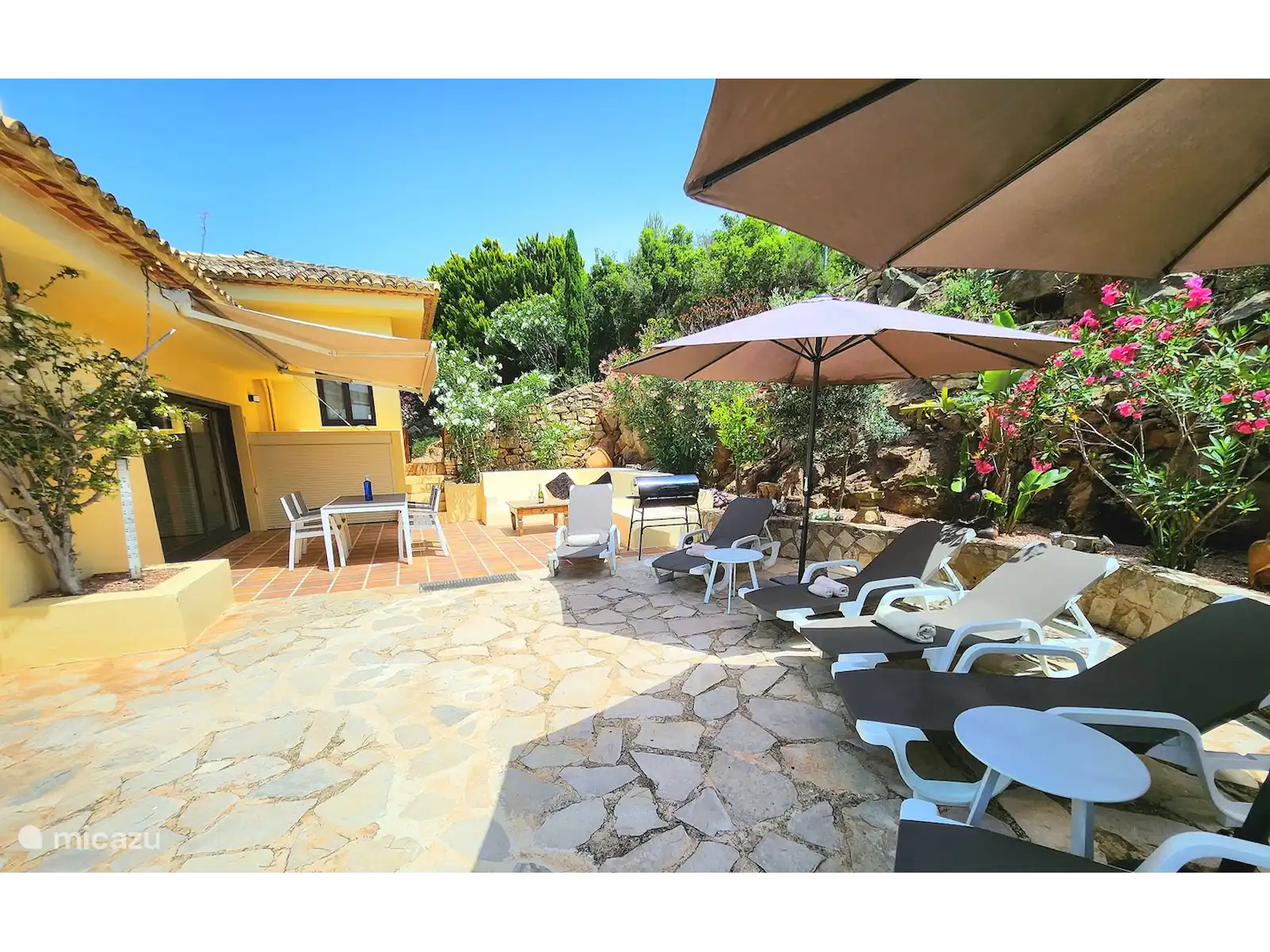 La maison sur 1 000 m² de terrain a été entièrement rénovée, meublée tendance et équipée de tout confort. Il borde la réserve naturelle du Montgo.