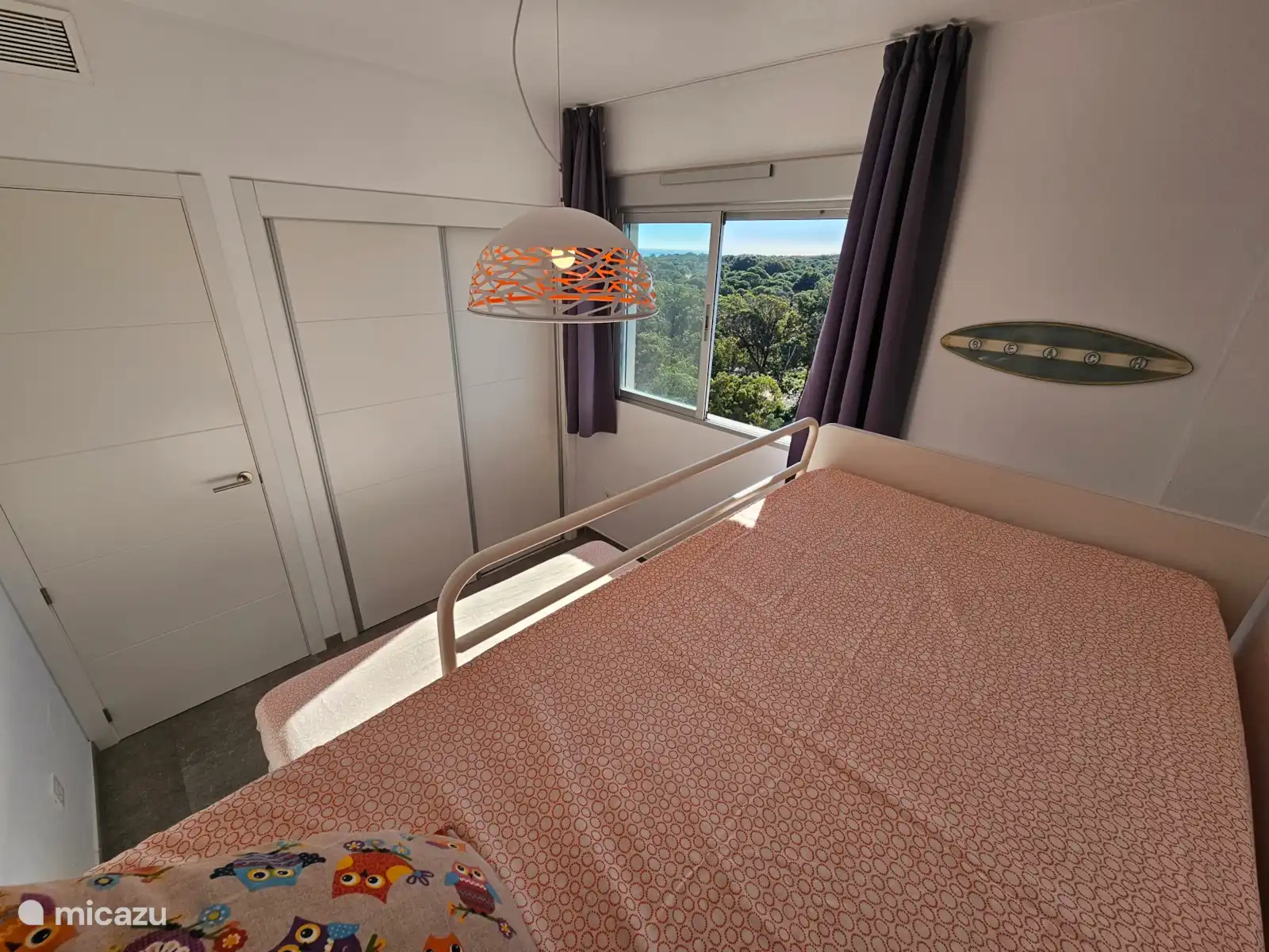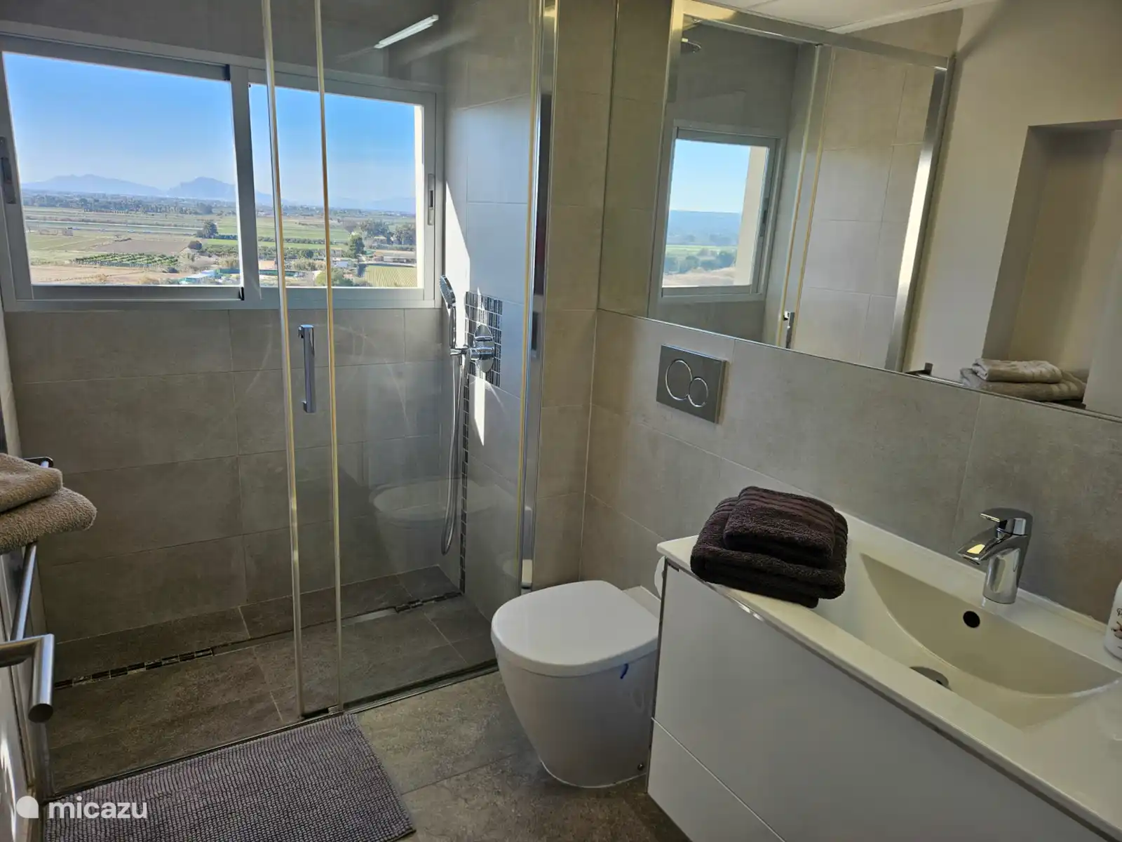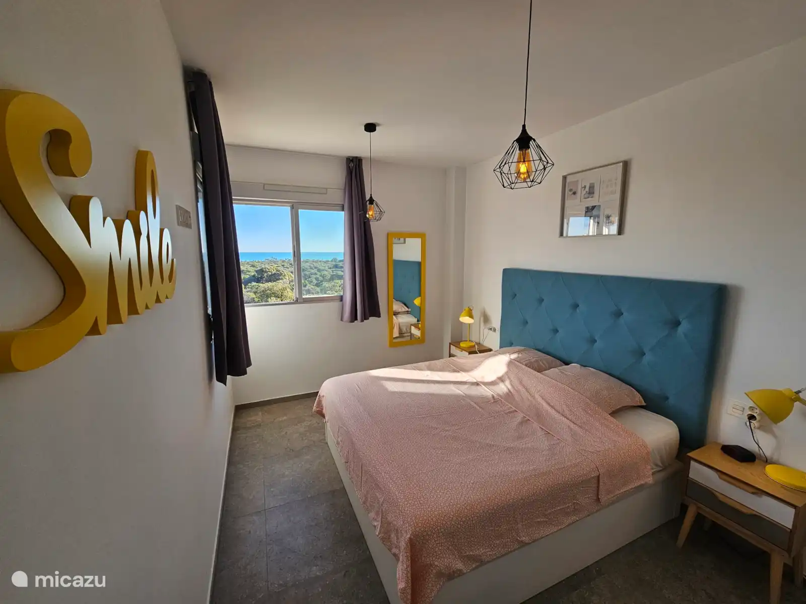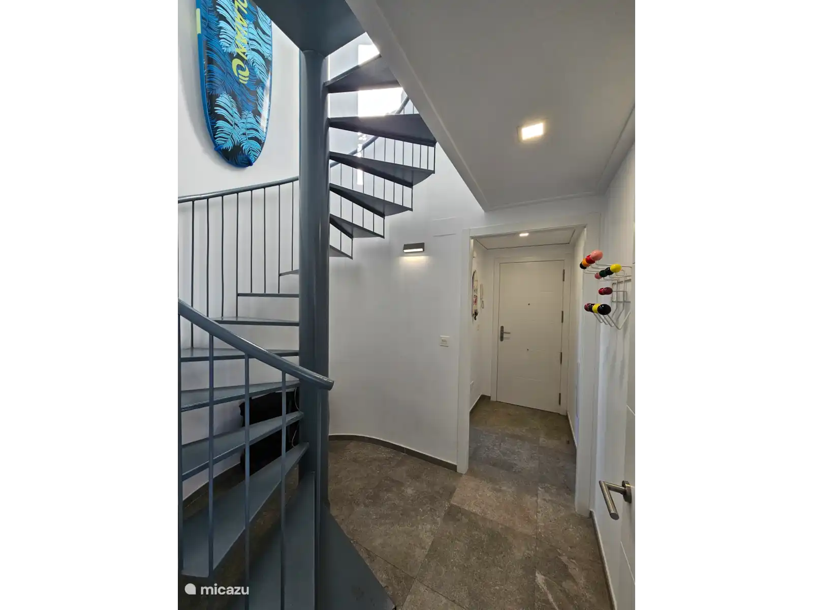 🌴 Depuis l’appartement et la vaste terrasse privée sur le toit, on regarde le soleil levant sur la mer Méditerranée et le parc de palmiers à l’avant, ainsi que l’arrière-pays avec la rivière Segura et le soleil couchant derrière les montagnes à l’arrière.