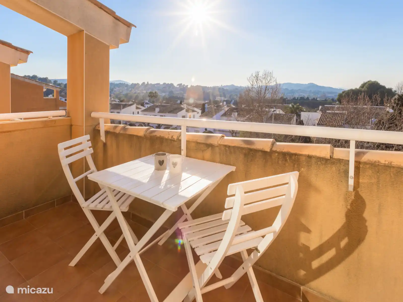 De la terrasse spacieuse, vous pourrez profiter d’une belle vue sur les environs et les montagnes au loin, tout en surplombant la piscine commune avec bassin pour enfants.