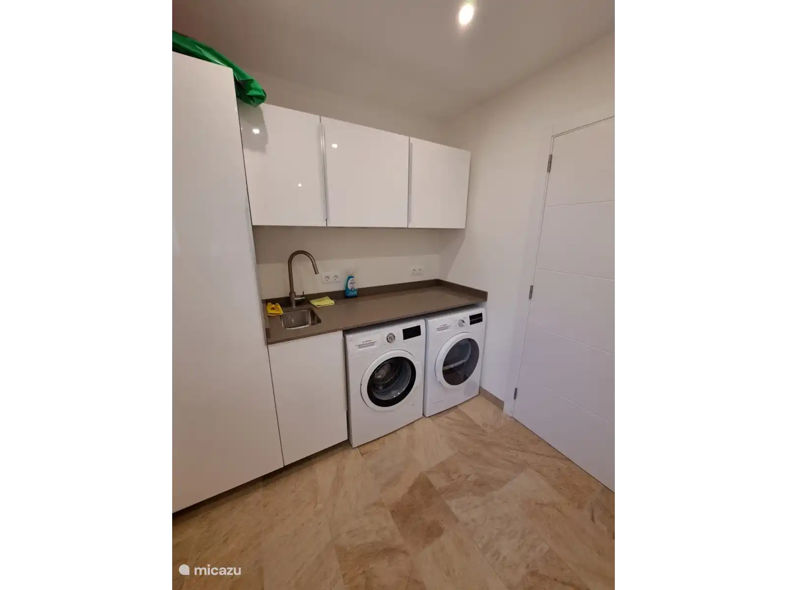 La cuisine est entièrement équipée et dispose d’une grande surface de travail. Il y a également une machine à laver, un sèche-linge et un séchoir.