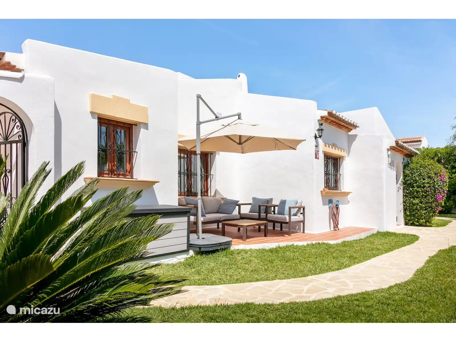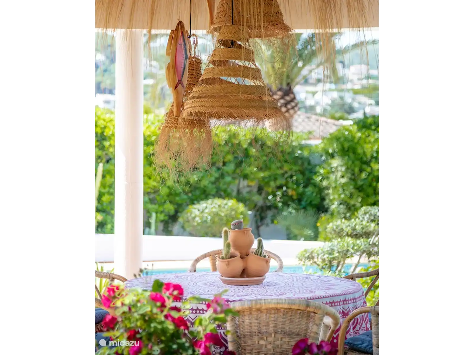 Casa de Viña est construite sur un terrain spacieux de 1100 m² et offre beaucoup d’intimité grâce à son jardin méditerranéen entièrement clôturé. Au centre du jardin se trouve la spacieuse **piscine privée** de 11 x 5 mètres, entourée de transats confortables où vous pourrez vous détendre au soleil. Répartis sur le jardin, vous trouverez plusieurs terrasses, ce qui vous permettra de profiter du soleil ou de l’ombre à tout moment de la journée. La terrasse couverte – la **naya** – forme le cœur de l’espace extérieur avec une **cuisine extérieure**, idéale pour les longues soirées à dîner avec vue sur le jardin attrayant. La villa dispose également d’une terrasse spacieuse avec **barbecue**, parfaite pour les dîners d’été en plein air.