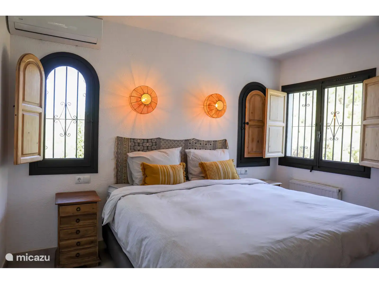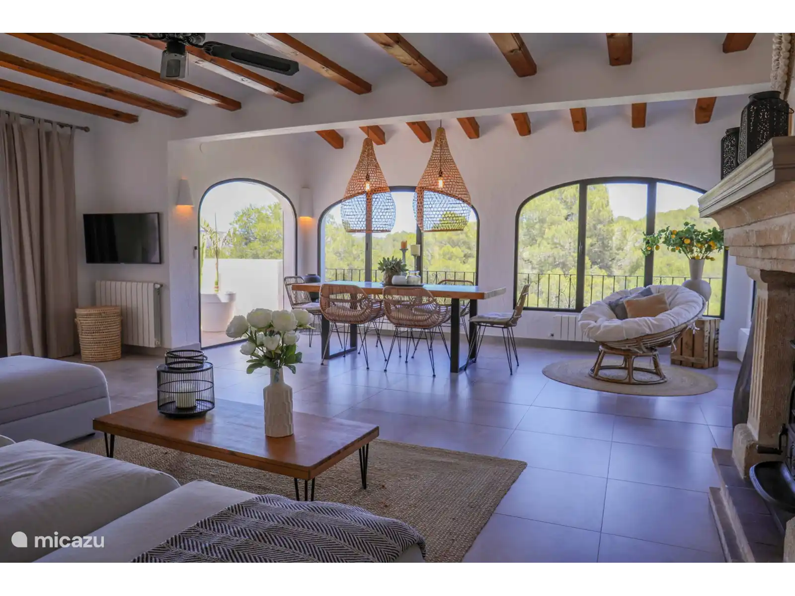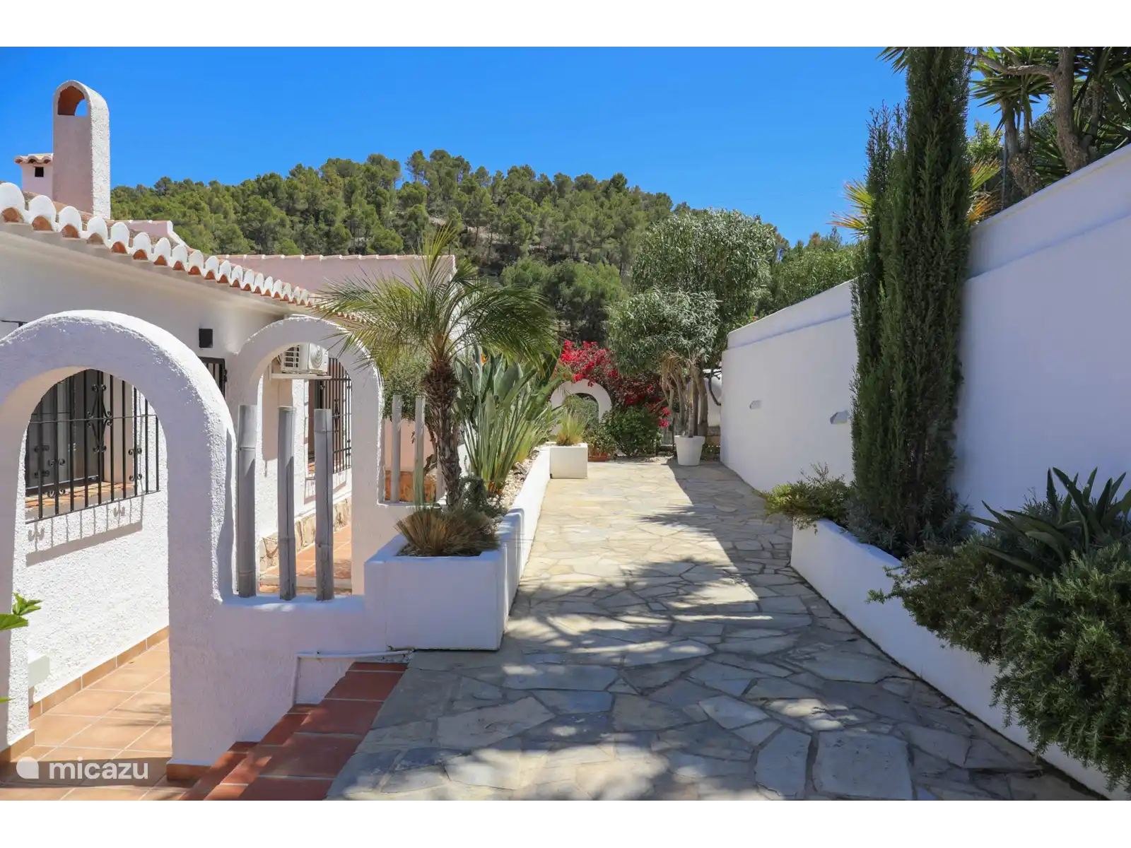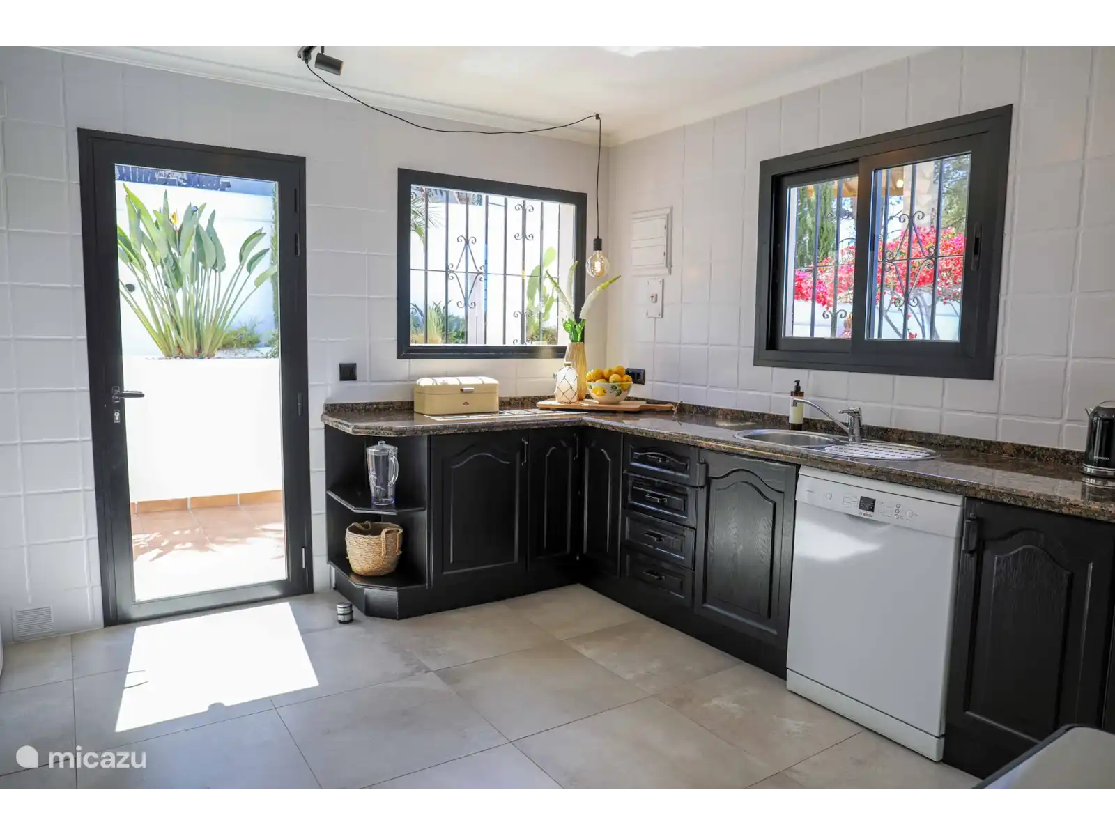 La Villa Montgo est adaptée à six personnes et se trouve au même niveau. Le salon douillet dispose de la climatisation, de la télévision, d’une salle à manger et d’un coin salon. De là, vous pouvez facilement accéder à la cuisine équipée de lave-vaisselle, micro-ondes, four, plaque à 5 feux, réfrigérateur, congélateur, grille-pain et filtre ainsi que cafetière Krups. La villa compte trois chambres. La chambre 1 dispose d’un lit double (180x200 cm) et d’une salle de bain attenante avec lavabo, douche, toilettes et sèche-cheveux. Les chambres 2 et 3 ont toutes deux un lit double (150 x 200). La salle de bain 2 dispose d’une douche, des toilettes, d’un lavabo et d’un sèche-cheveux. Le wifi et la climatisation sont disponibles dans toute la maison de vacances, ainsi qu’une machine à laver.