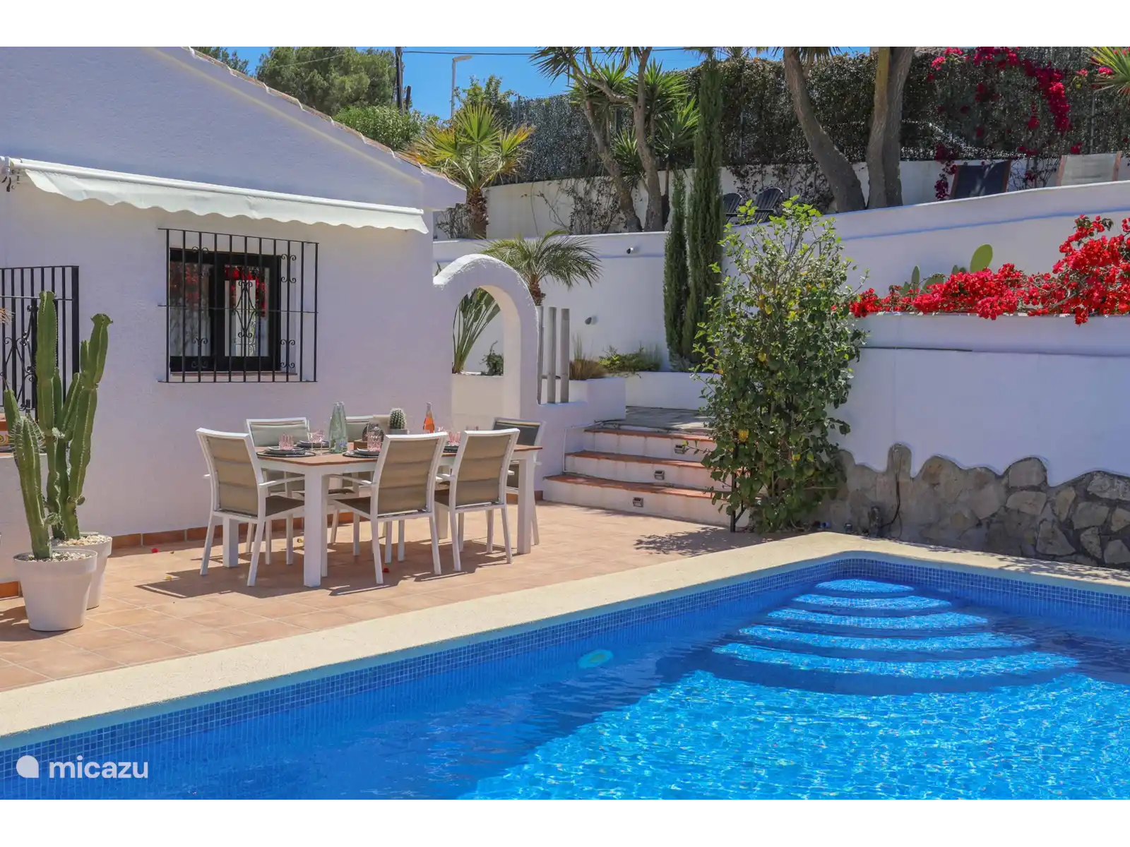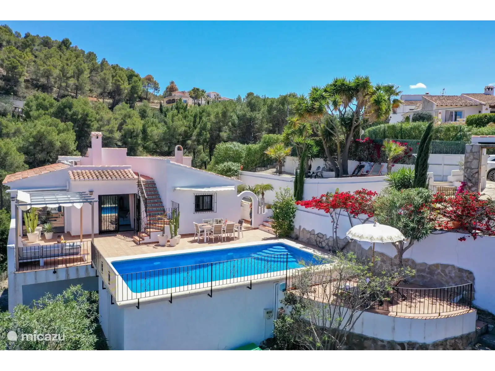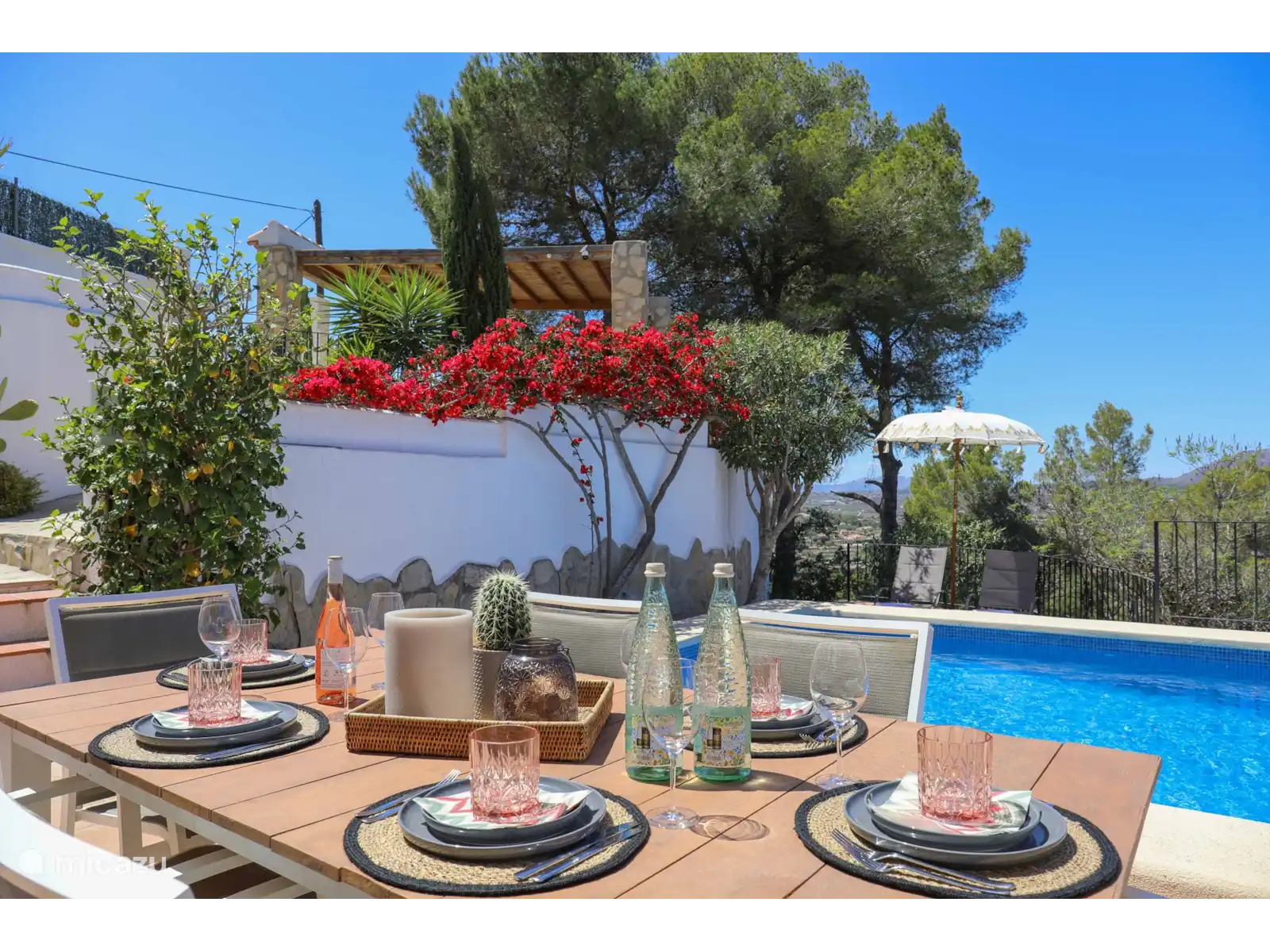L’extérieur à Villa Montgo est parfait. Cette belle villa doit son nom à la vue phénoménale sur les montagnes du Montgo. La Villa Montgo dispose d’une charmante piscine privée (8 x 4 m - 2 m de profondeur) avec des transats tout autour où l’on peut profiter des chaudes journées d’été. De plus, vous disposez d’un joli salon à l’extérieur avec un baldaquin (visible sur les dernières photos) et une table à manger où vous pouvez dîner.