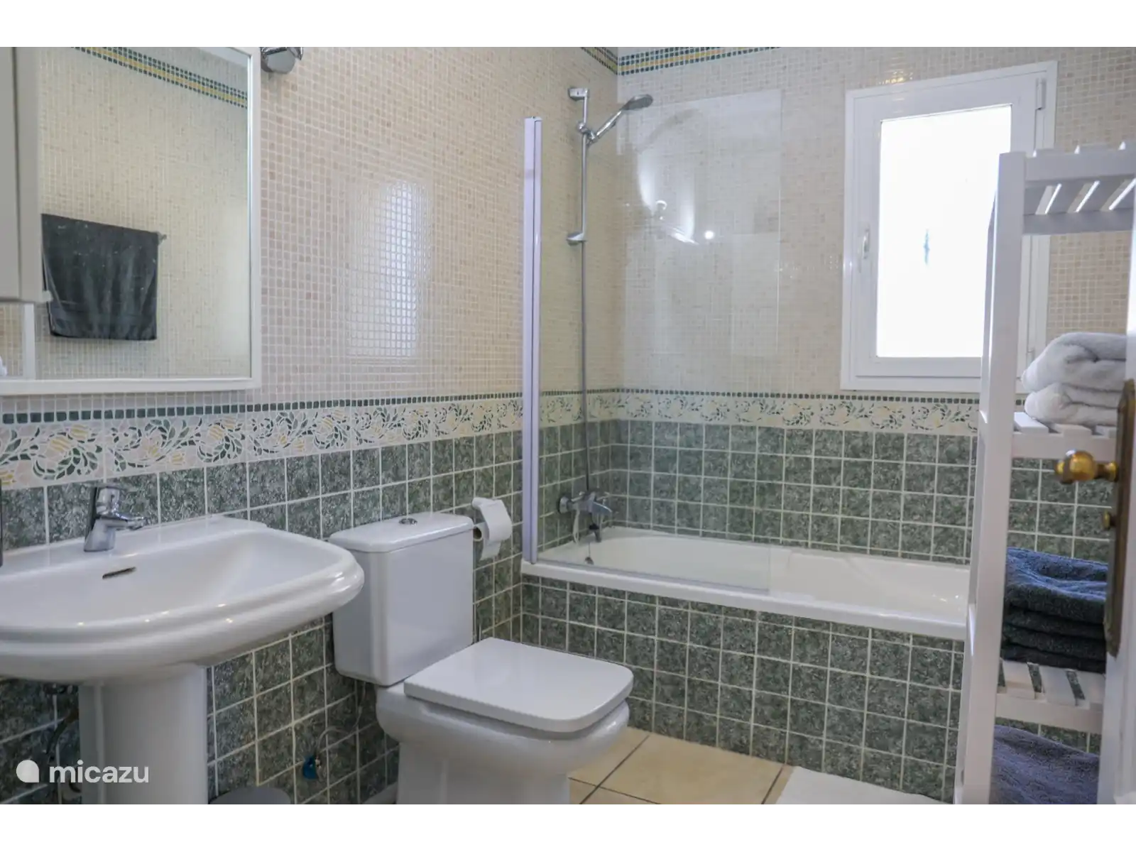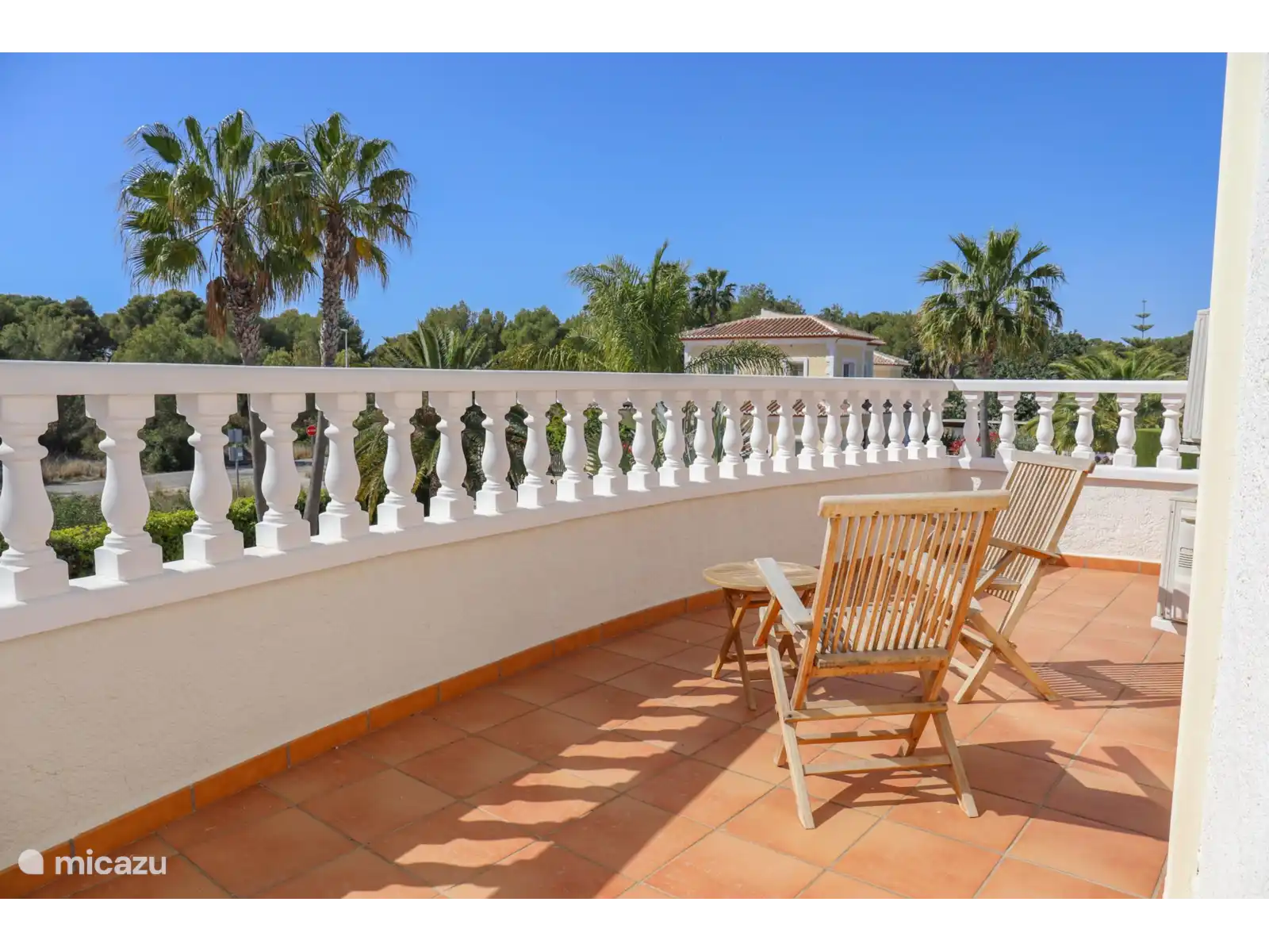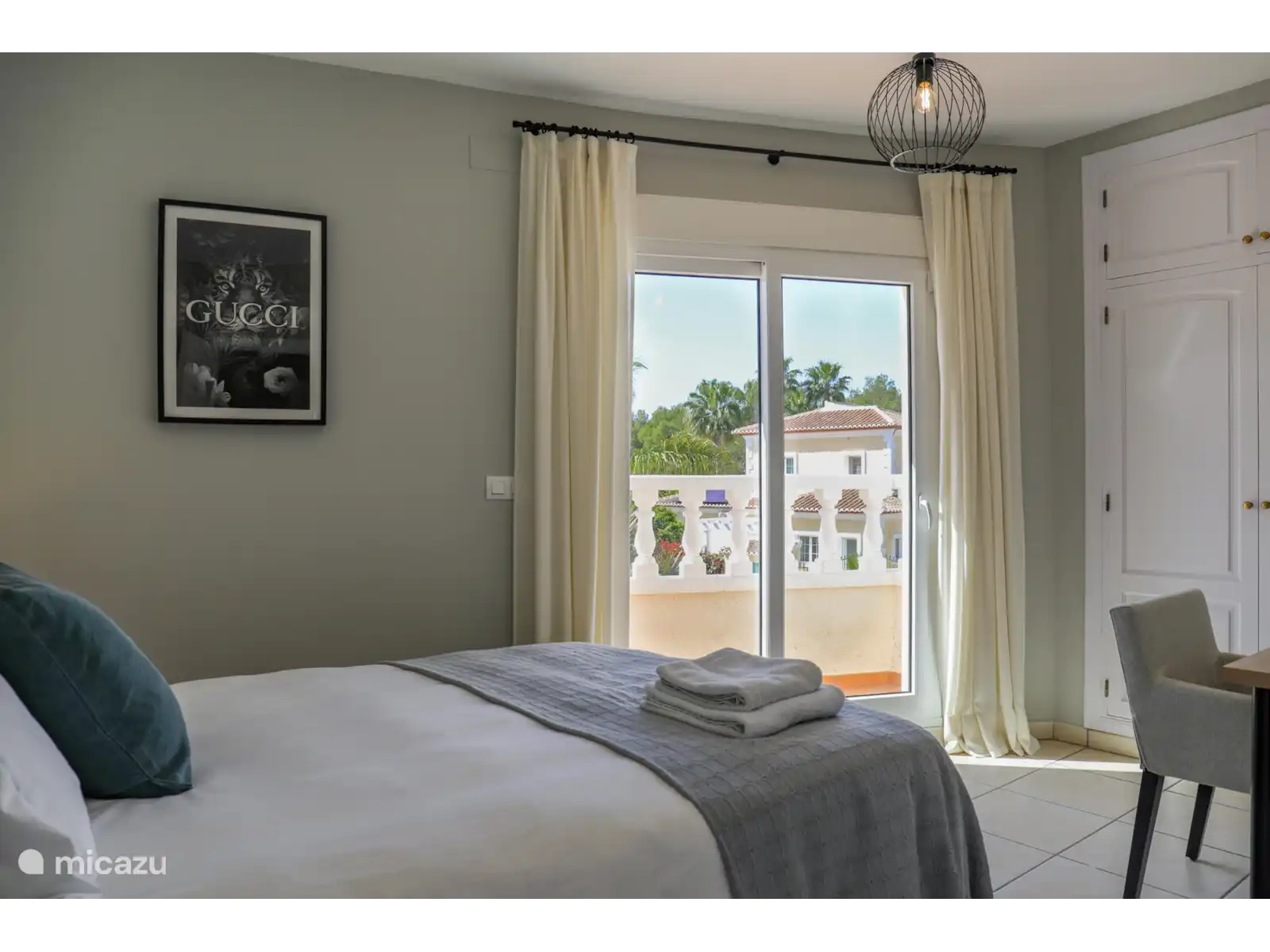 Par les escaliers du palier on atteint le rez-de-chaussée avec 3 chambres supplémentaires. Il y a une chambre spacieuse avec un lit double (160x200cm) et une salle de bain attenante avec baignoire et toilettes. Chambre 3 : un lit double (160x200cm) et chambre 4 : un lit double (140x200cm). Les chambres 3 et 4 partagent la troisième salle de bain avec toilettes et douche. Ces chambres ont toutes accès à un grand balcon/terrasse qui donne sur le jardin avec piscine. Tous les lits sont de bonne qualité. Les chambres sont toutes équipées de moustiquaires aux fenêtres et sont climatisées.