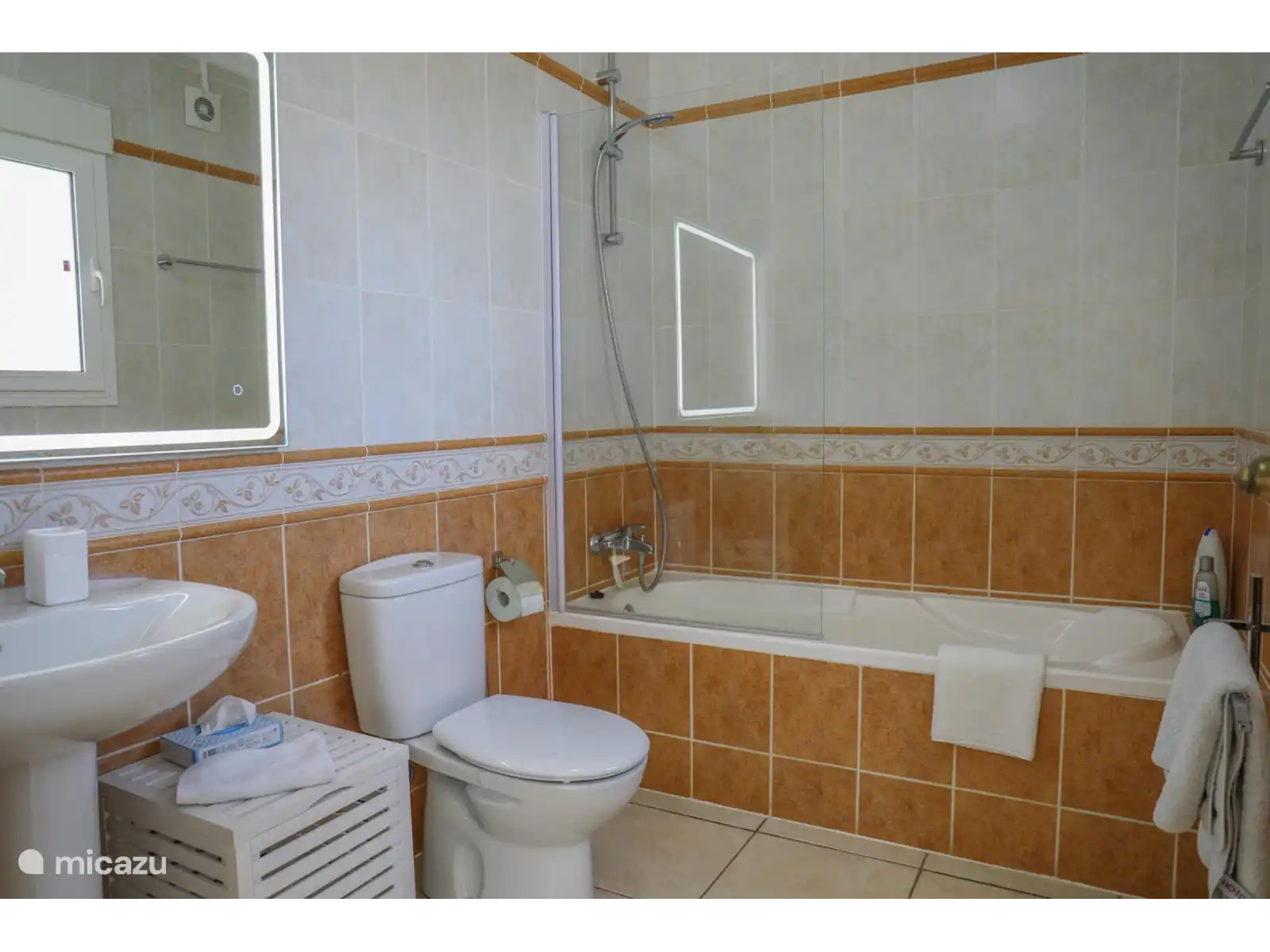 Au rez-de-chaussée de la villa Tordanxa se trouve la chambre 1 : un lit double (160x200 cm). C’est la chambre principale avec salle de bain attenante avec bain et toilettes. En raison de l’emplacement de cette chambre au rez-de-chaussée combinée au terrain plat, cette maison convient également aux personnes handicapées.