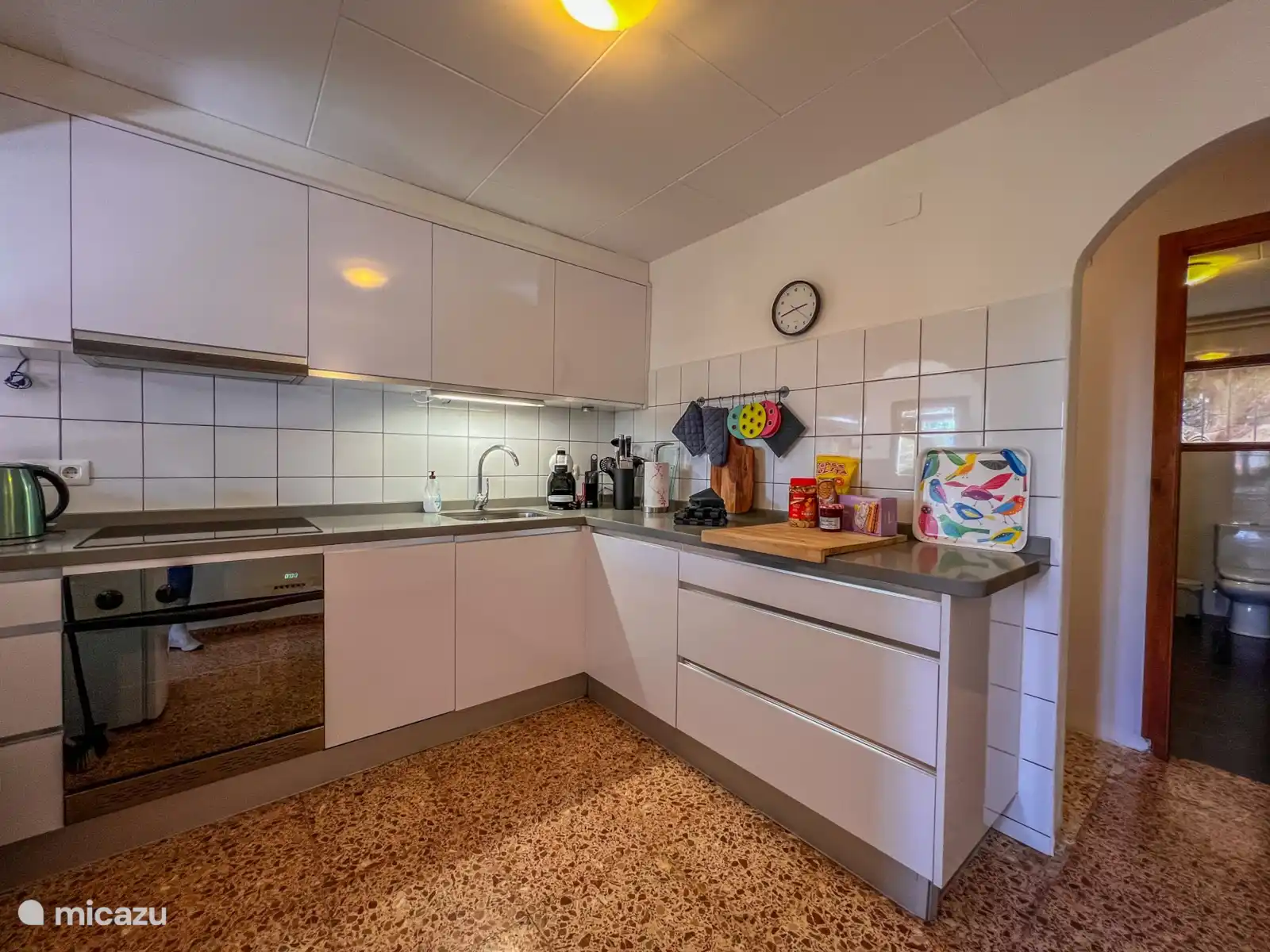 La cuisine spacieuse est équipée d’une plaque vitrocéramique, d’un lave-vaisselle, d’un four, d’un réfrigérateur avec tiroirs de congélation, d’une cafetière, d’une bouilloire, etc.