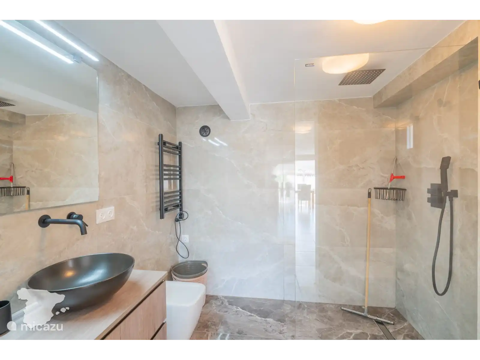 Découvrez un appartement séparé au rez-de-chaussée, avec son propre salon avec canapé, télévision et coin repas. Il y a aussi une cuisine moderne et entièrement équipée où vous pourrez préparer de délicieux repas. Deux autres chambres confortables, chacune équipée d’un lit double et de la climatisation, offrent beaucoup d’espace pour se détendre. Une salle de bain bien aménagée avec douche, lavabo et toilettes ajoute au confort de ce niveau inférieur.