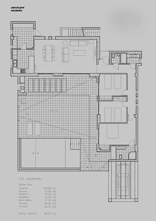 Sur la terrasse (100 m2) avec cuisine extérieure se trouvent un salon confortable et une table à manger. Il y a des transats dans le jardin paysager. La piscine (8x4) et la douche extérieure sont adjacentes à la terrasse. Il y a également une grande terrasse sur le toit (64 m2) avec un salon aménagé pour profiter du soleil du soir.
