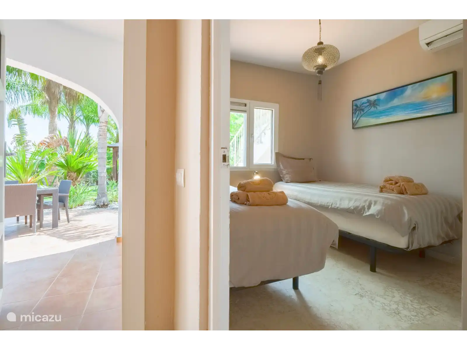 Dans la villa au dernier étage se trouve la cuisine avec lave-vaisselle, la salle à manger avec climatisation et cheminée et un coin salon confortable avec de belles vues. À côté de la salle à manger se trouve le salon avec télévision néerlandaise, climatisation et une belle vue sur la piscine et la réserve naturelle. Si vous descendez les escaliers, vous trouverez les 2 chambres et la salle de bain. La chambre principale dispose de la climatisation et d’une télévision avec des chaînes néerlandaises. Dans la chambre twin, vous avez également la climatisation à votre disposition. Dans cette chambre, les lits peuvent également être assemblés. Des deux chambres, vous avez une vue sur le jardin et la réserve naturelle. La salle de bain est située à proximité des chambres et dispose d’une douche à l’italienne. Juste à côté de la villa, vous trouverez la réserve naturelle protégée de Moraira qui vous donne encore plus d’intimité et sur laquelle vous avez une belle vue depuis les deux terrasses.