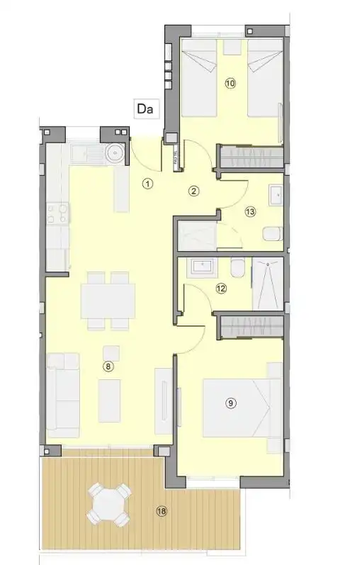 Cet appartement récemment construit dispose d’une terrasse. Situé au deuxième étage