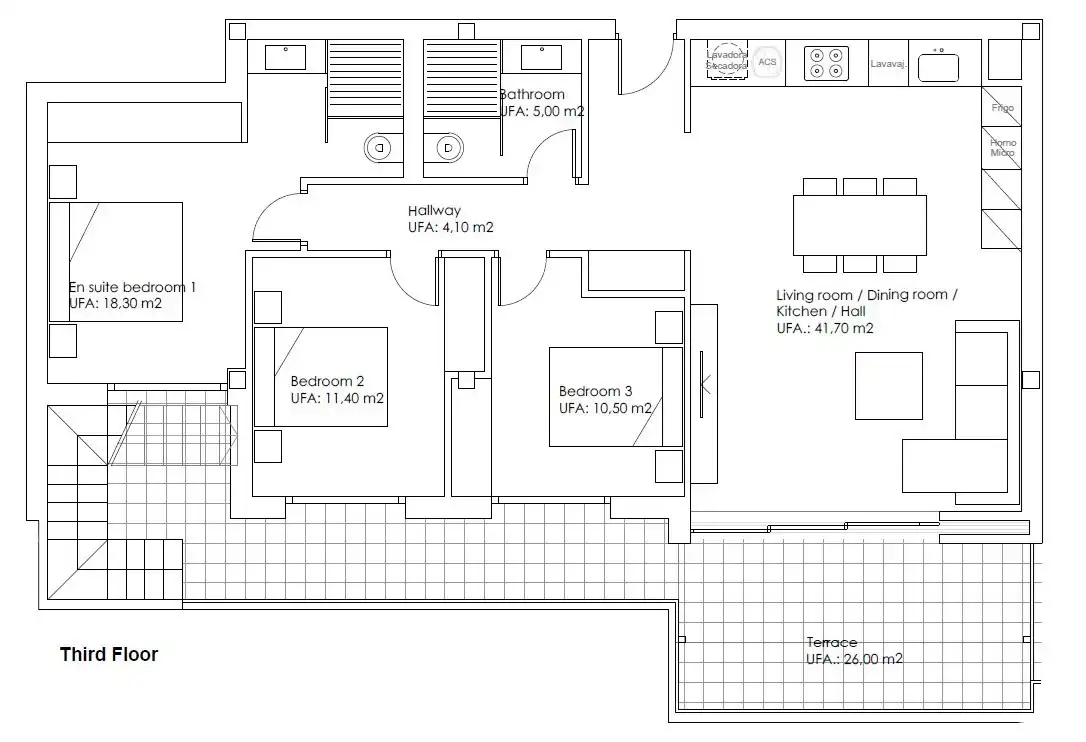 Naranjo59 est un penthouse luxueusement aménagé dans un bâtiment tout neuf, situé dans le prestigieux Golf Resort de Las Colinas à Orihuela, près de Campoamor, au sud d’Alicante (Costa Blanca Sud).