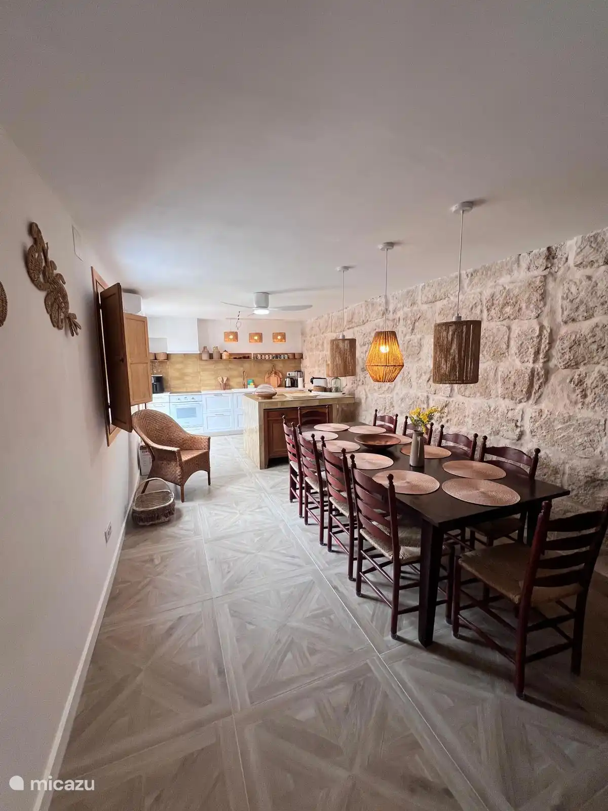 La terrasse spacieuse (240 m²) offre une vue imprenable sur les collines et la vallée, tandis que les touches décoratives soigneusement choisies donnent à la maison une personnalité unique. L’amour de l’hôtesse pour le style et la décoration d’intérieur se ressent partout : chaque détail contribue à l’harmonie entre les éléments traditionnels espagnols et le design contemporain.