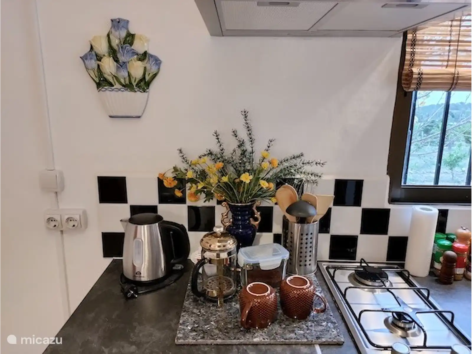 Le studio est entièrement équipé avec une cuisine et une salle de bain et de nombreux matériaux de construction naturels ont été utilisés. Vous avez beaucoup de lumière à travers la fenêtre de la cuisine et les portes-fenêtres donnant sur la terrasse spacieuse adjacente avec des sièges confortables. Vous pouvez également vous installer sur le toit-terrasse au-dessus du studio d'où vous aurez une vue imprenable.