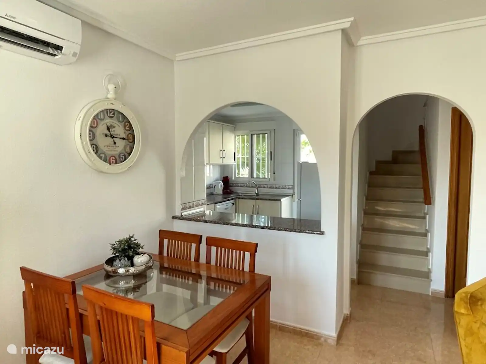 Rez-de-chaussée : Salon, cuisine ouverte, débarras (peut également être utilisé comme chambre supplémentaire) et une salle de bains équipée d’une machine à laver et d’un évier. La cuisine est équipée d’un réfrigérateur avec compartiment congélateur, d’une cuisinière, d’un micro-ondes, d’une bouilloire, d’une cafetière et d’un lave-vaisselle.