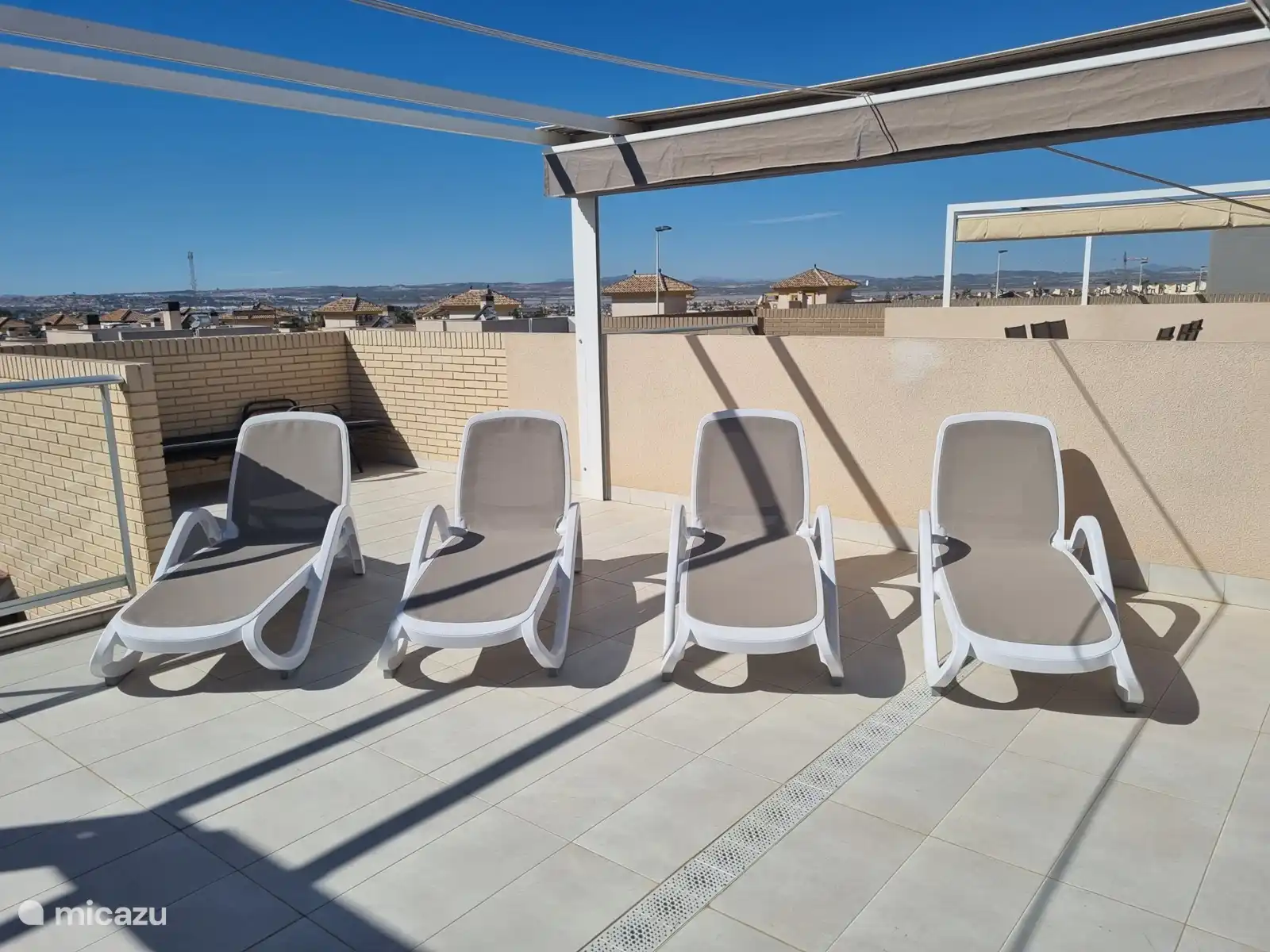 L'appartement pour quatre personnes est situé au premier étage et est accessible par des escaliers et dispose d'un grand solarium avec de superbes vues. Le solarium dispose d'un barbecue et d'une douche.