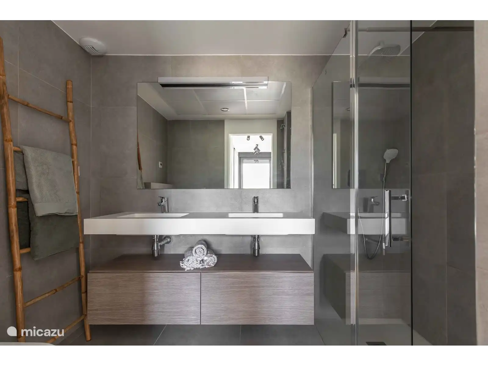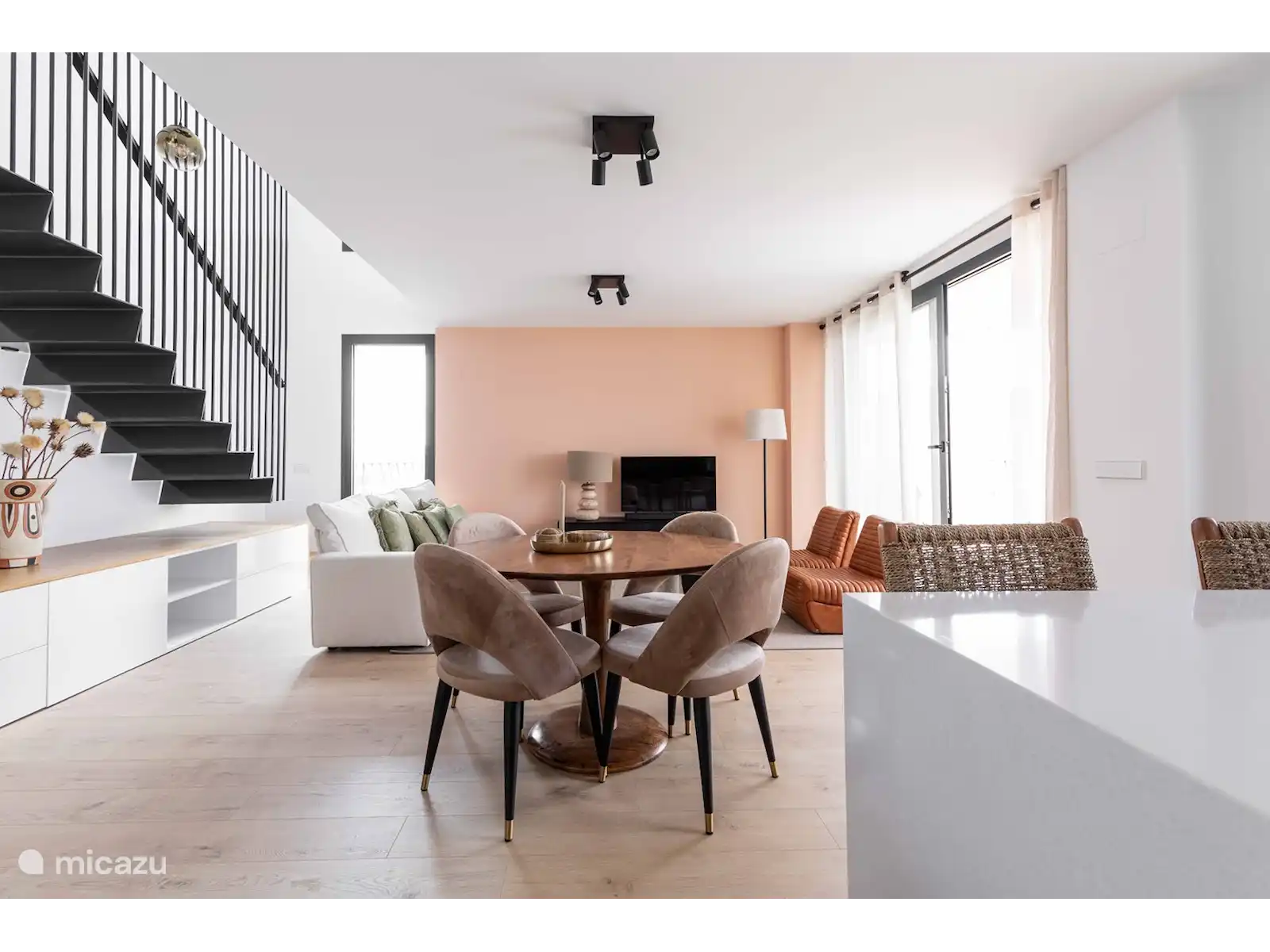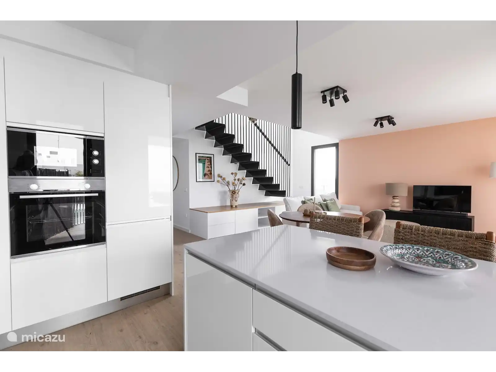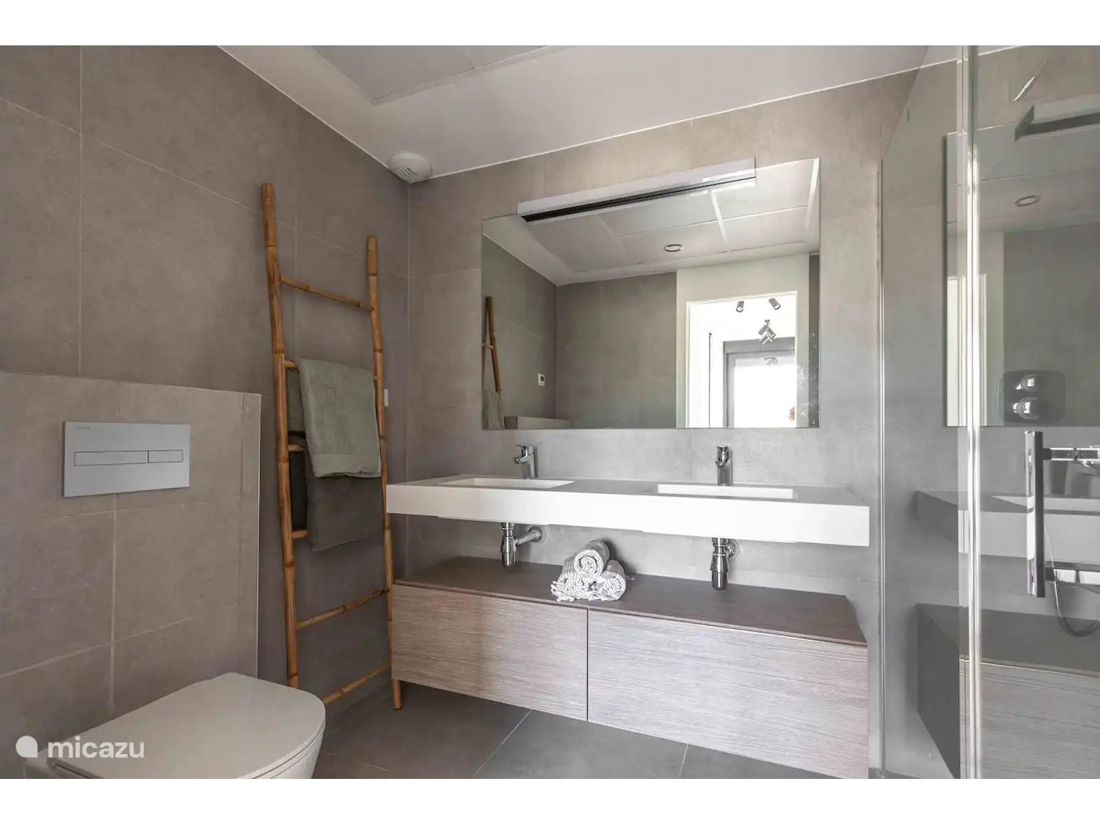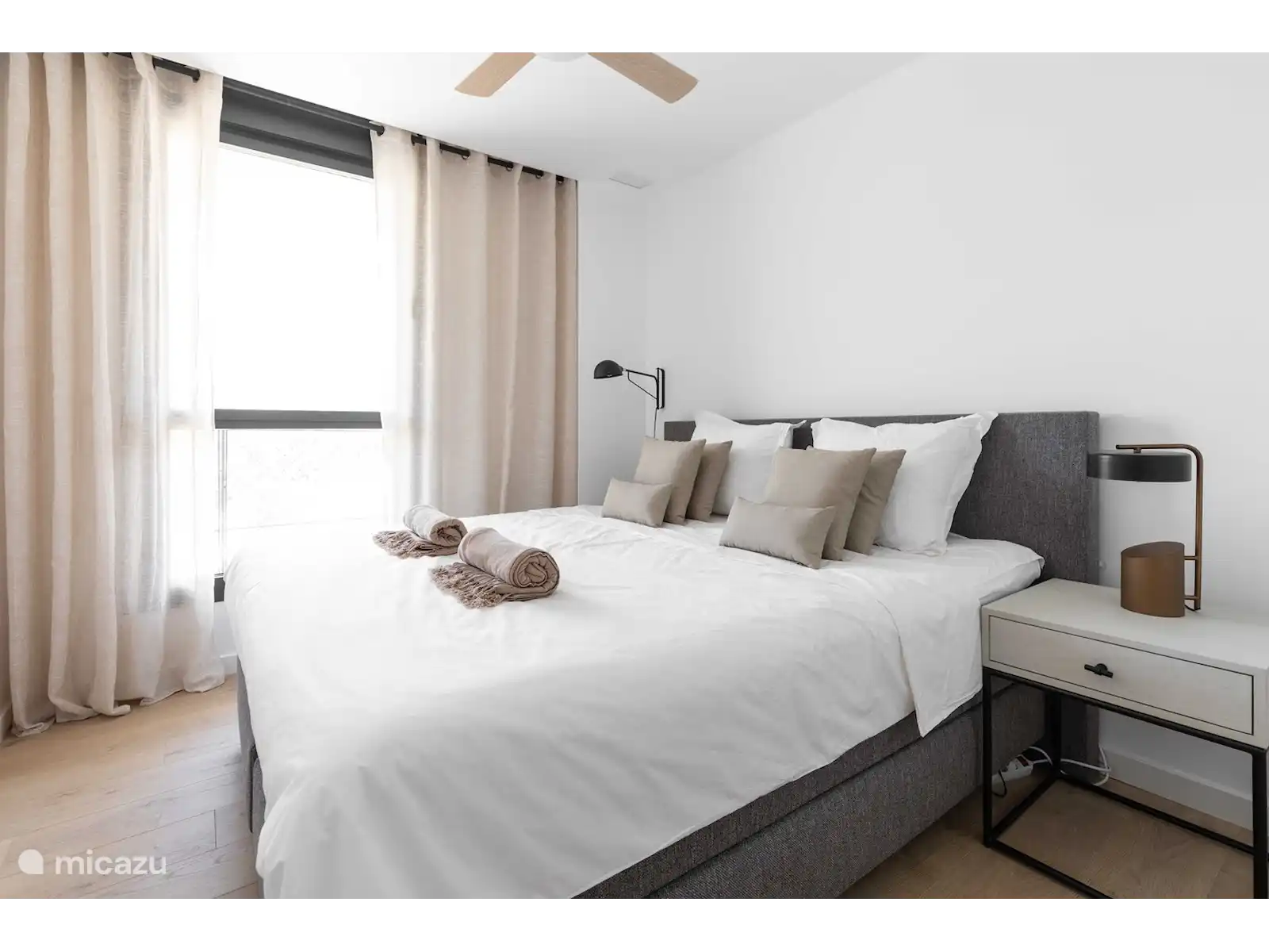 C’est un penthouse duplex neuf, avec 3 chambres et 3 salles de bains. Il y a un salon lumineux avec une cuisine ouverte entièrement équipée, une terrasse attenante avec barbecue et une grande table à manger. De plus, l’appartement dispose d’une vaste terrasse sur le toit de 70 m avec une magnifique vue sur la mer Méditerranée et ses environs. L’hébergement offre de l’intimité et est confortablement meublé. En plus d’un climatiseur, les chambres sont équipées d’un ventilateur de plafond.