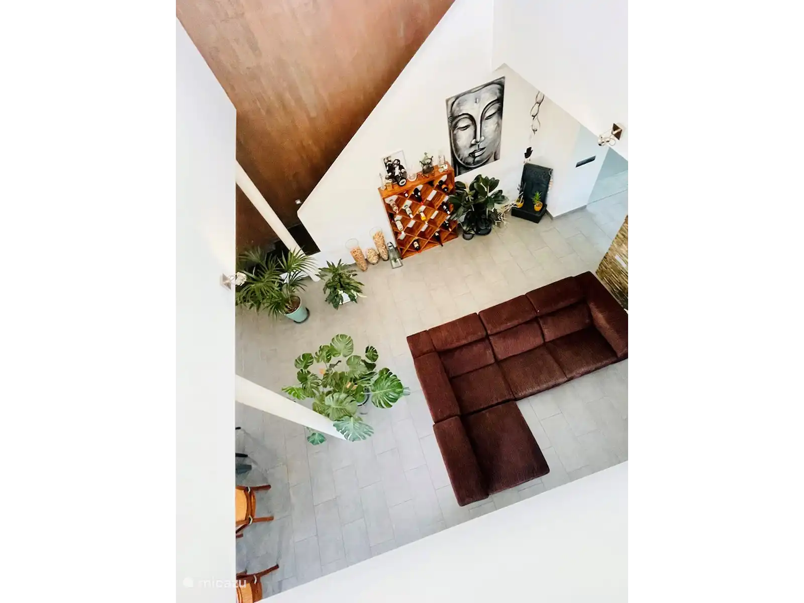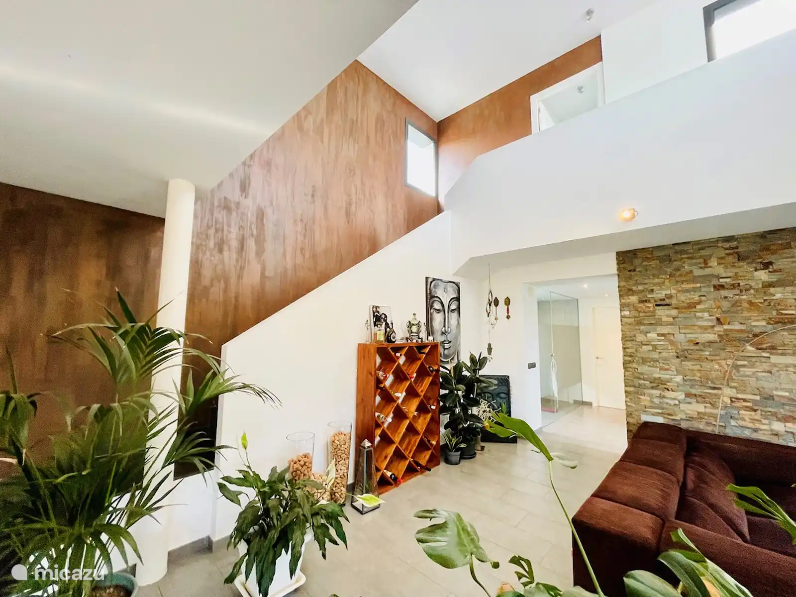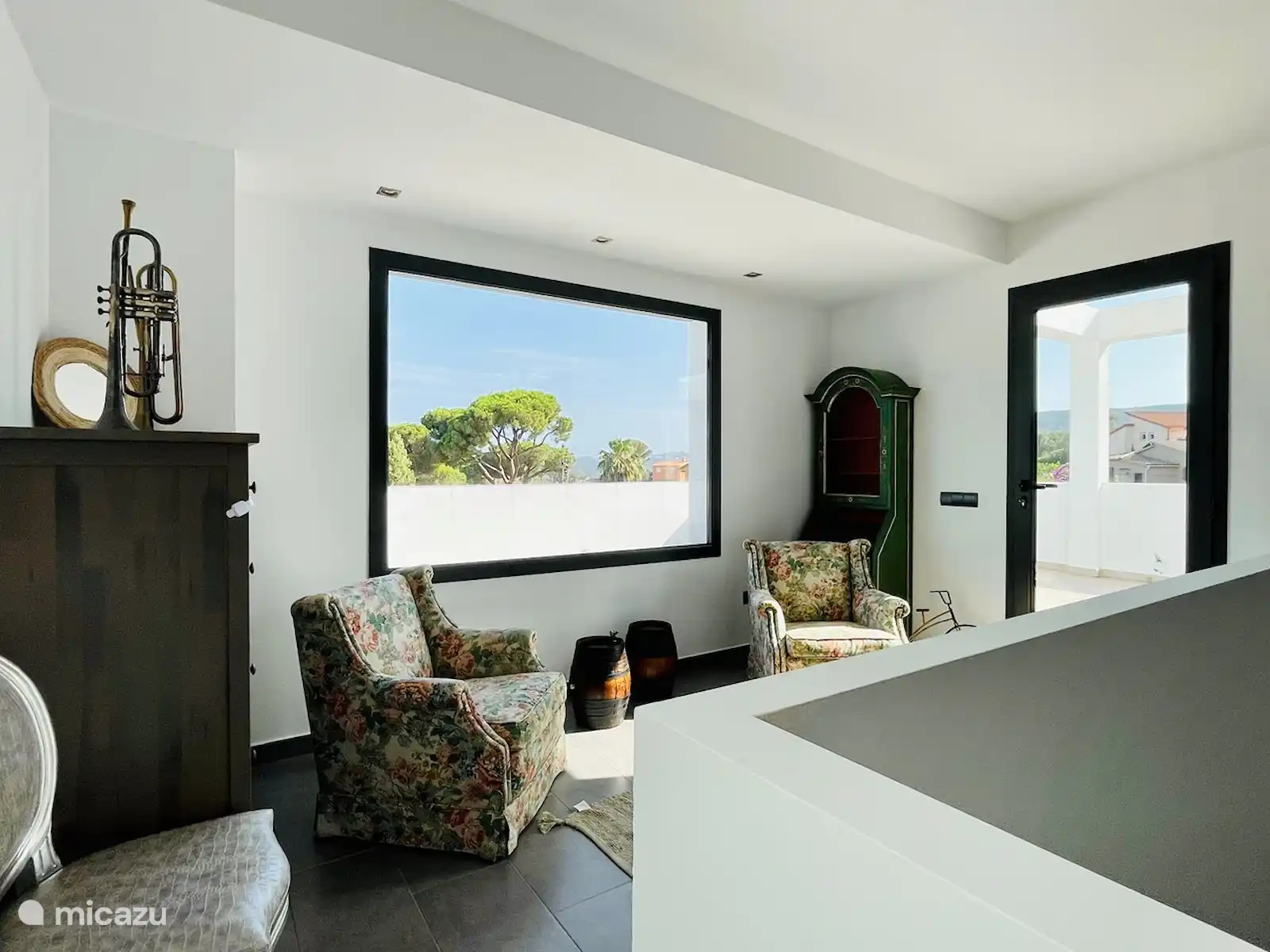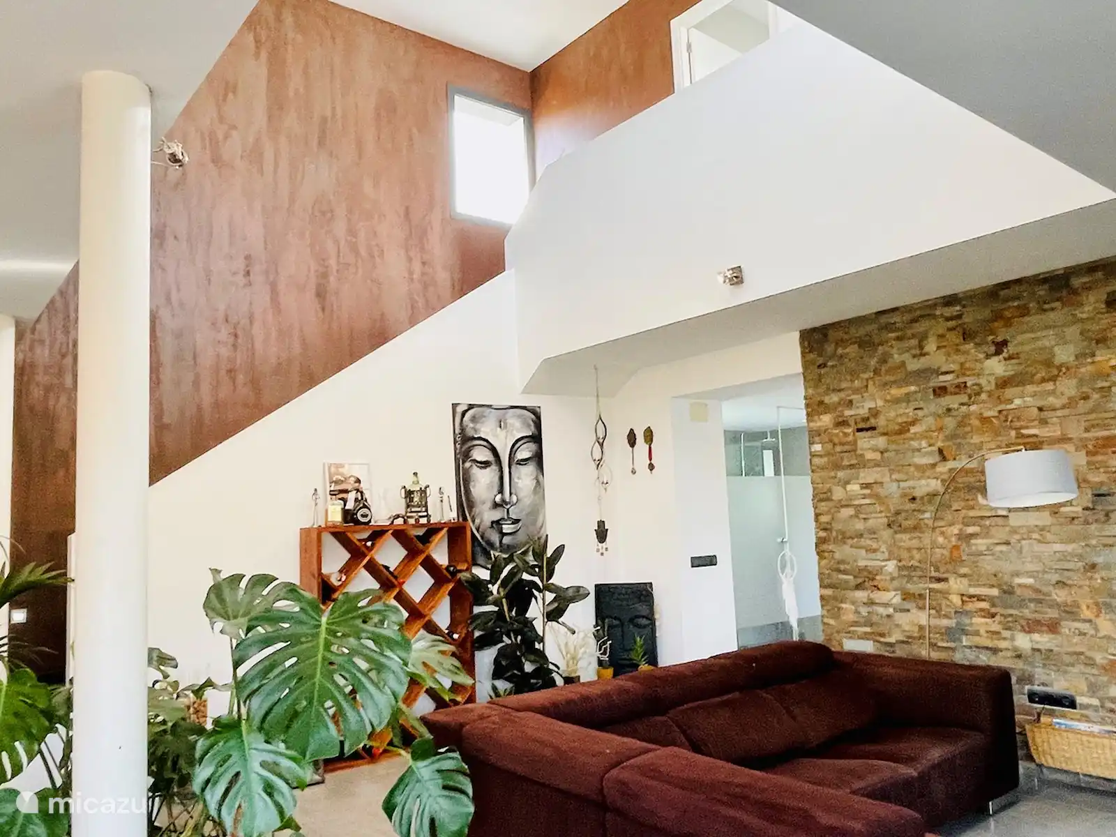 La suite, la pièce principale de 27m2, est située au premier étage, auquel on accède par un escalier intérieur ouvert depuis le salon.
