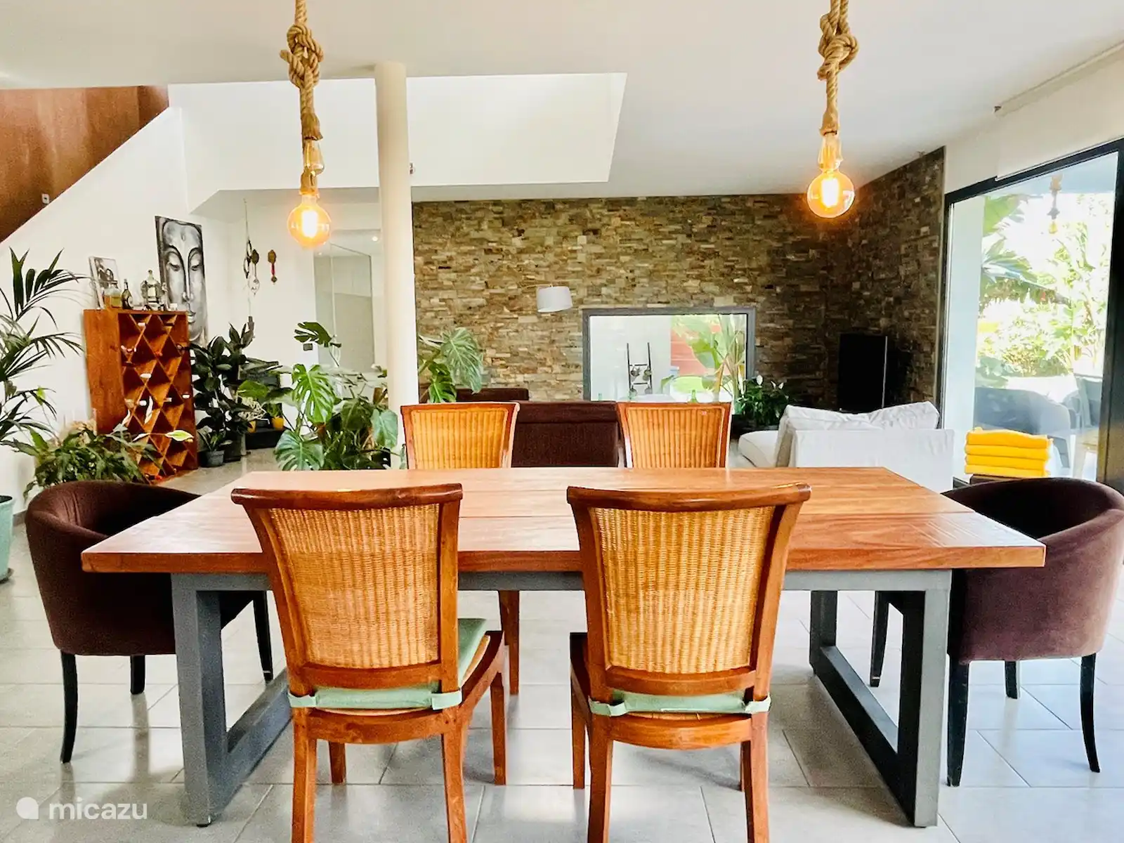 Au milieu se trouve une table originale en bois massif