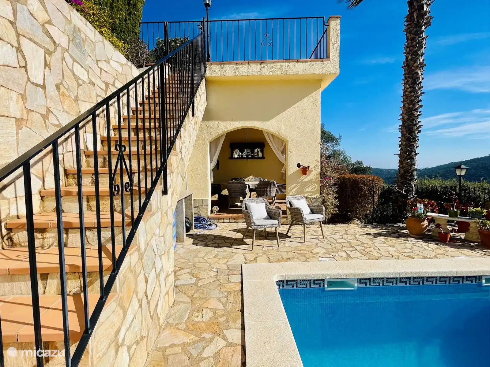 Sortez dans la zone de la piscine et profitez du soleil méditerranéen sur l’une des six chaises longues autour de la piscine de 8x4 mètres. Allumez le barbecue pour un délicieux festin en plein air, ou dînez sous le porche couvert à table pour six, entouré de plantes indigènes luxuriantes dans le jardin.