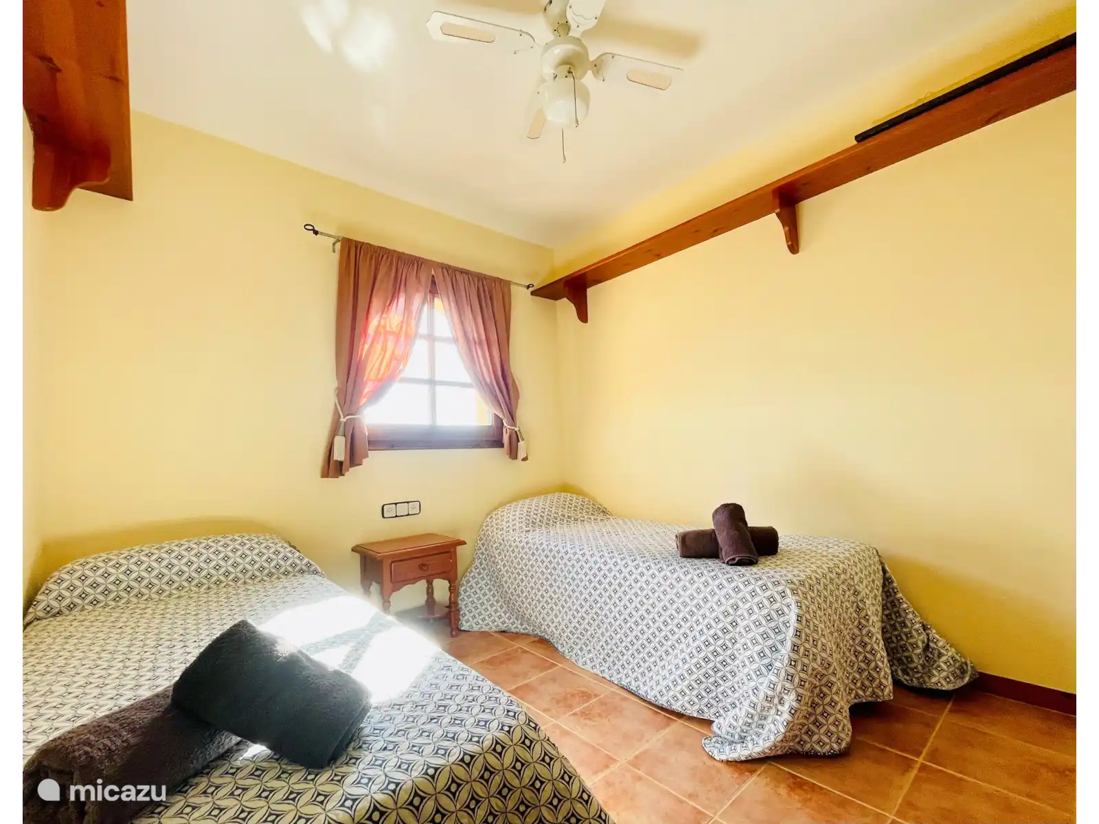 À côté de la chambre double se trouve une chambre bien équipée avec des lits individuels, chacun mesurant 0,80 x 1,80 mètres. Pour votre commodité, un ventilateur de plafond fournit une brise douce. Une salle de bain avec baignoire et douche complète cet étage.