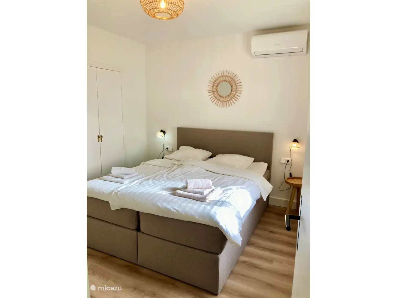 Habituellement, il n’est pas nécessaire de louer un climatiseur car la villa bénéficie de la brise marine, mais vous pouvez en décider sur place par pièce. C’est possible. Louez également des ventilateurs si nécessaire pour 6,50 € par semaine.
