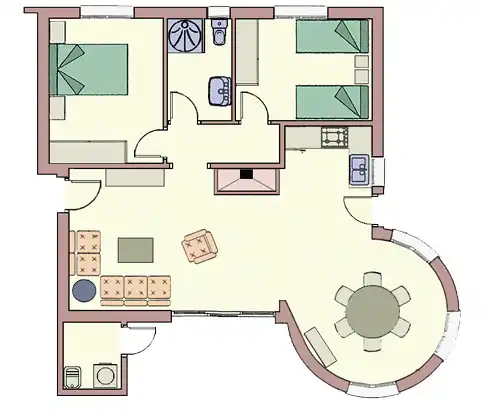 La maison de vacances est équipée d’une cuisine, d’un coin salon.