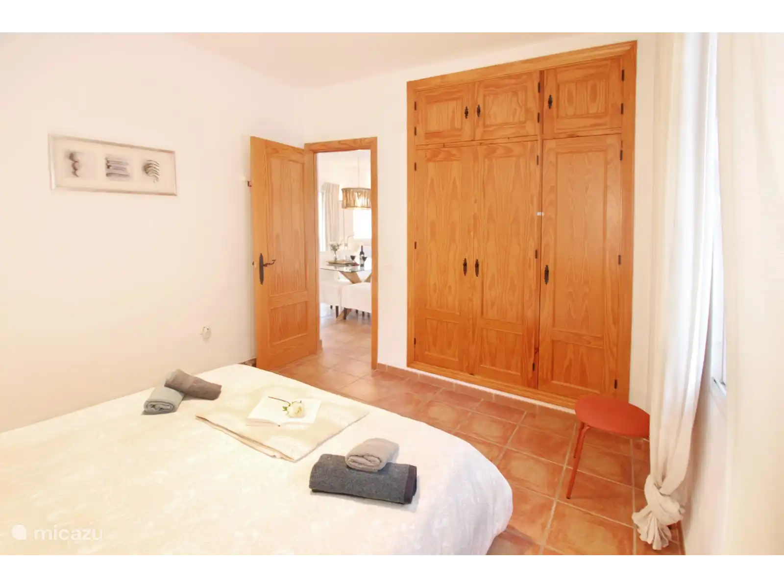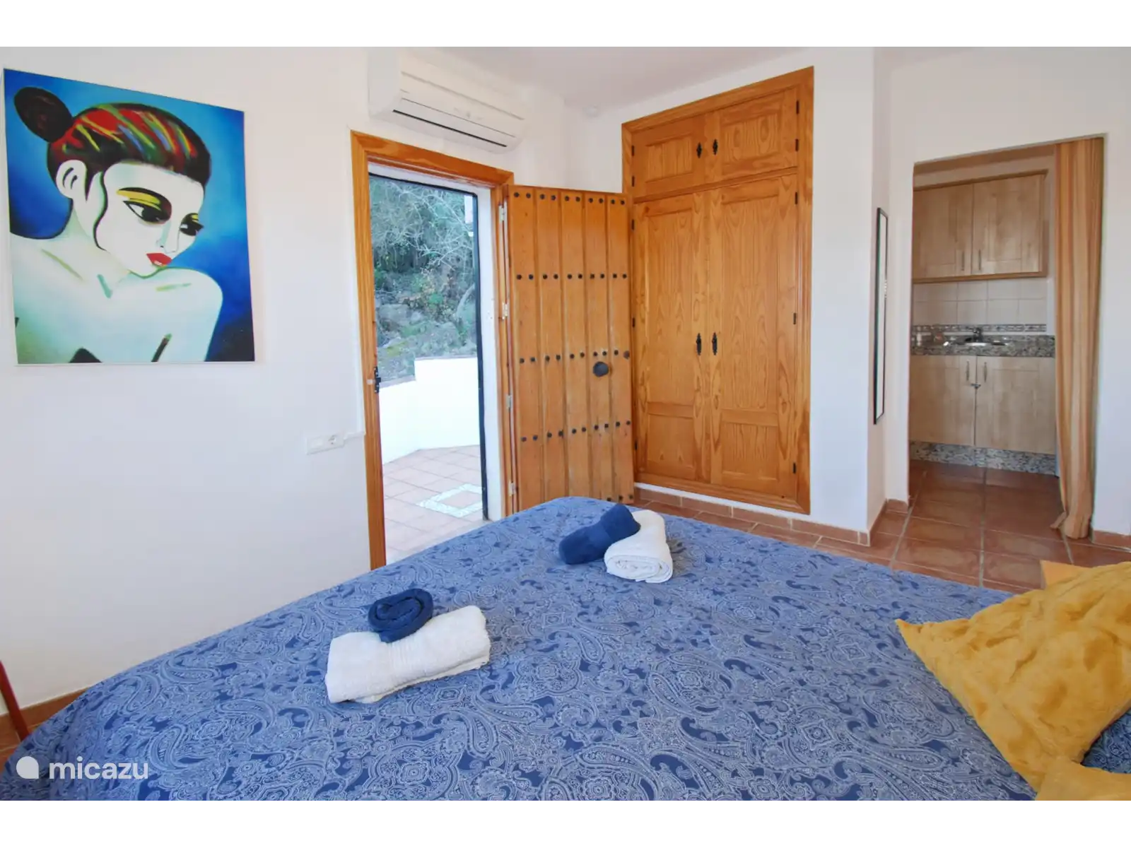 Il y a trois chambres, chacune avec armoires encastrées et climatisation. Une chambre est située dans un espace séparé avec sa propre kitchenette et salle de bain – parfaite comme studio ou maison d’hôtes. Le salon est également climatisé, ce qui vous permet de rester confortablement même par temps chaud.