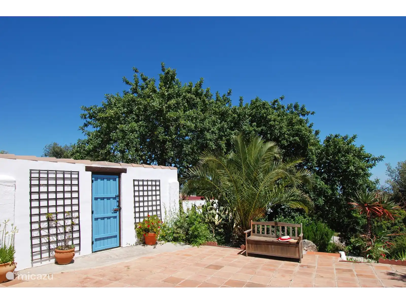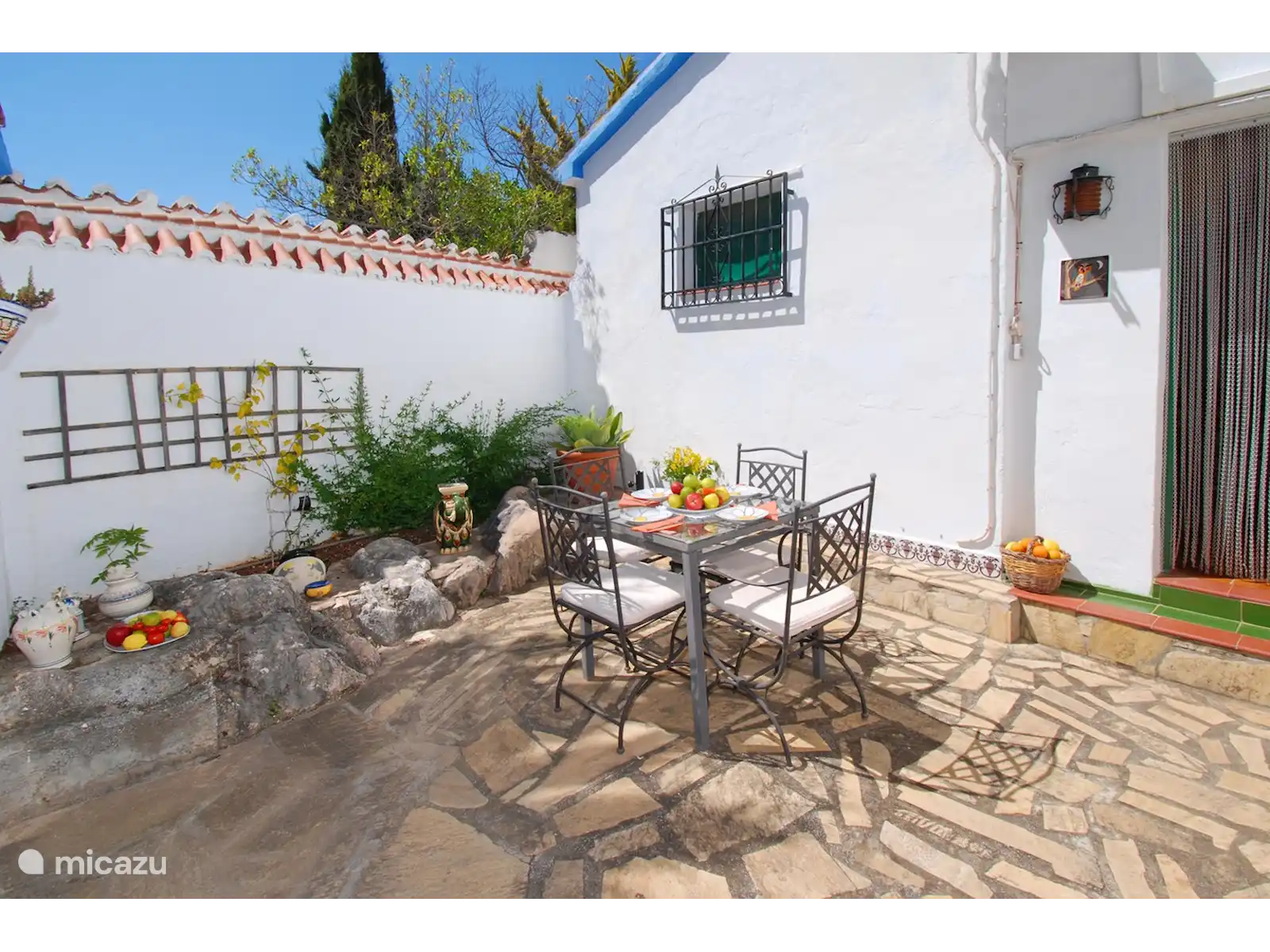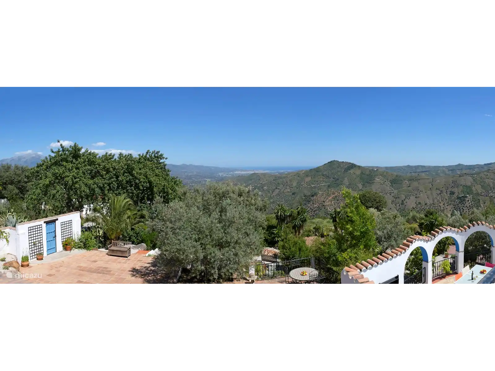 Cette charmante villa est cachée dans le paysage vallonné verdoyant près de Comares, un village pittoresque plein de caractère. Dès que vous franchissez la porte, un jardin coloré se déploie avec des palmiers, des fleurs et des recoins cachés pour se détendre. Tout ici tourne autour de la paix, de l’espace et de l’atmosphère.