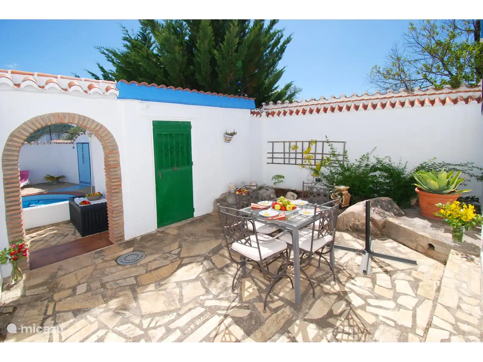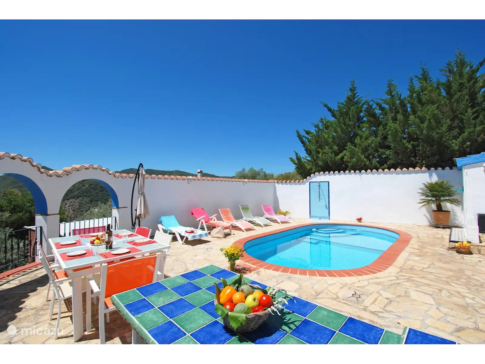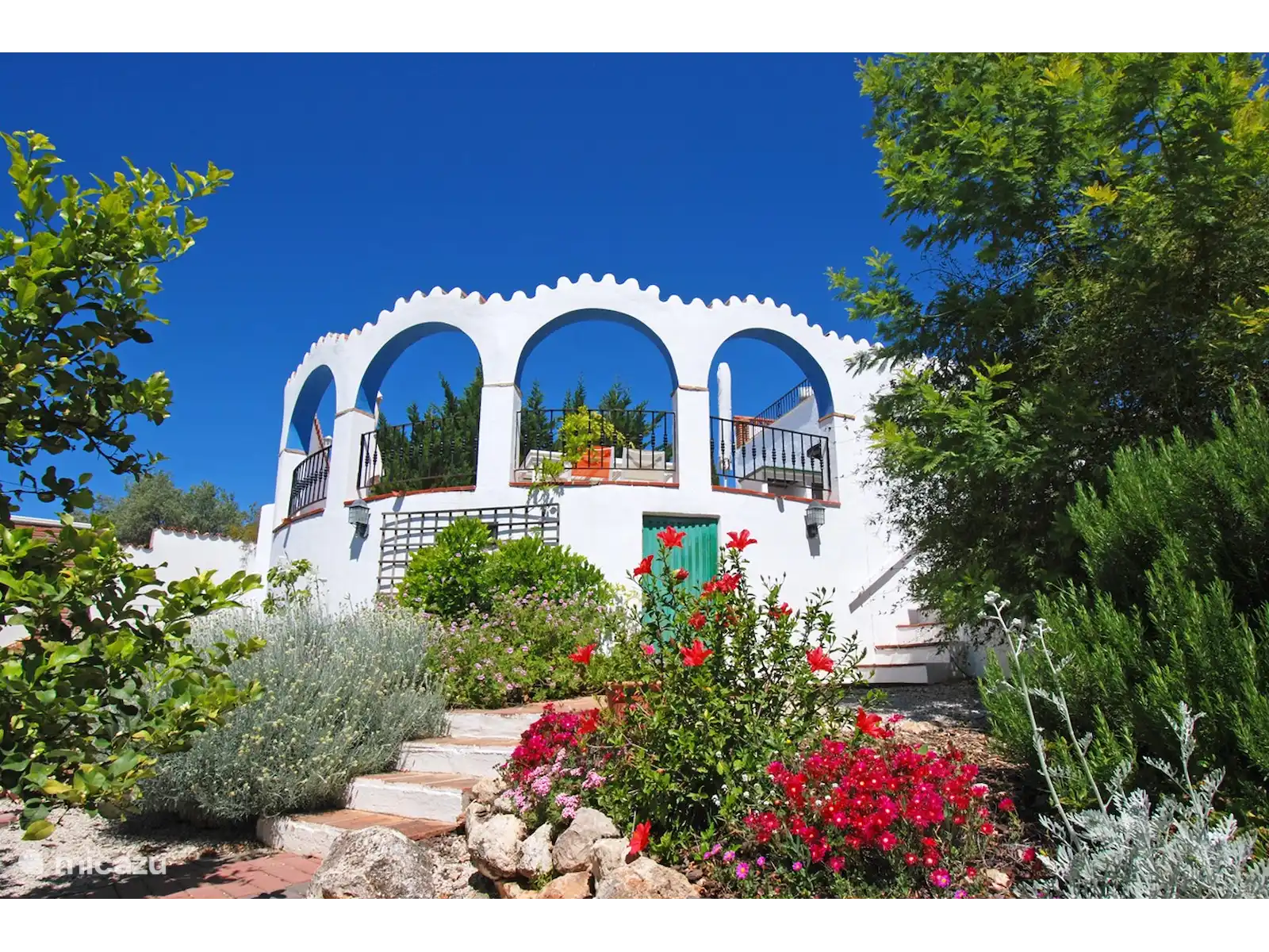 Cette charmante villa est cachée dans le paysage vallonné verdoyant près de Comares, un village pittoresque plein de caractère. Dès que vous franchissez la porte, un jardin coloré se déploie avec des palmiers, des fleurs et des recoins cachés pour se détendre. Tout ici tourne autour de la paix, de l’espace et de l’atmosphère.