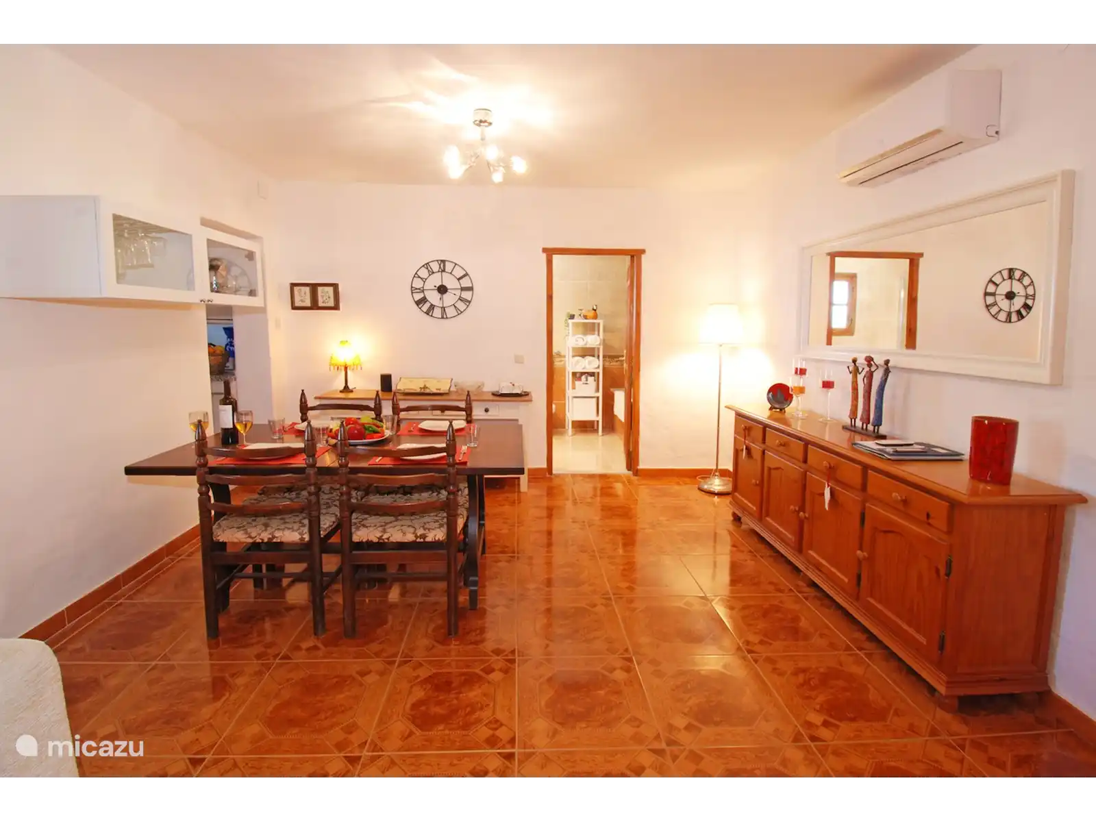 La maison elle-même dégage chaleur et style. À l’intérieur, vous trouverez un salon douillet avec cheminée, une cuisine entièrement équipée et trois chambres confortables (dont deux sont reliées) – toutes climatisées et décorées avec soin avec un souci du détail. Que vous dîniez ensemble sur le patio andalouse ou que vous regardiez le soleil se coucher sur la terrasse sur le toit, la villa vous invite à en profiter.