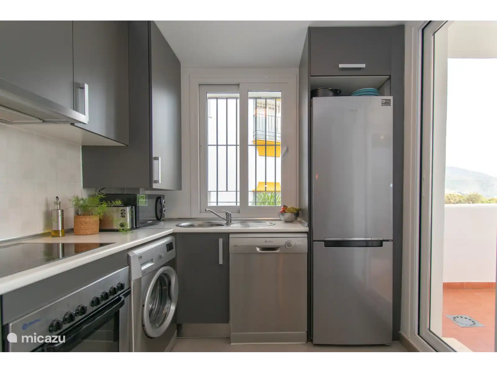 L'appartement comprend un séjour avec cuisine ouverte, deux chambres et deux salles de bains. Le salon dispose d'un canapé confortable, d'une télévision et d'un coin repas. La cuisine est équipée d'appareils modernes, dont un lave-vaisselle, un four, un four micro-ondes et un lave-linge. Les chambres sont spacieuses et toutes deux disposent de leur propre armoire intégrée. Les salles de bains disposent d'une douche à l'italienne. L'appartement dispose d'une belle terrasse qui surplombe le terrain de golf et les montagnes de la Sierra Bermeja d'un côté, et la mer de l'autre. Estepona et ses environs ont beaucoup à offrir pour tout type de vacances. La présence de terrains de golf, de plages, de centres commerciaux et de parcs naturels offre quelque chose à chacun. Vos hôtes sont prêts à vous fournir informations et conseils.